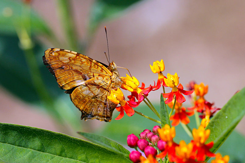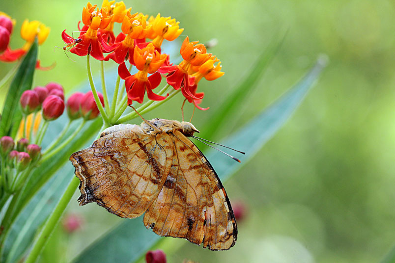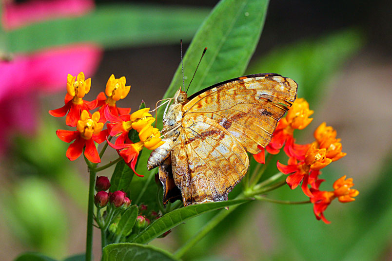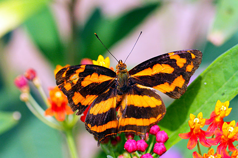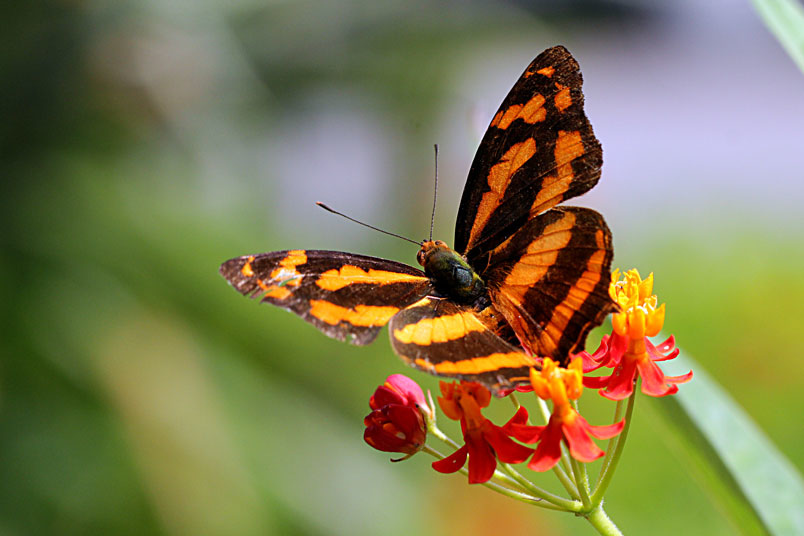 寬紋黃三線蝶(蛺蝶科)展翅45~50mm,外觀近似黃三線蝶,但本種前