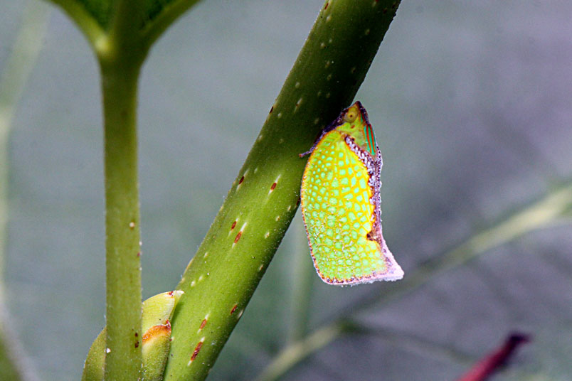 褐緣蛾蠟蟬,半翅目,蛾蠟蟬科。成長史為:卵>若蟲>成蟲三個階