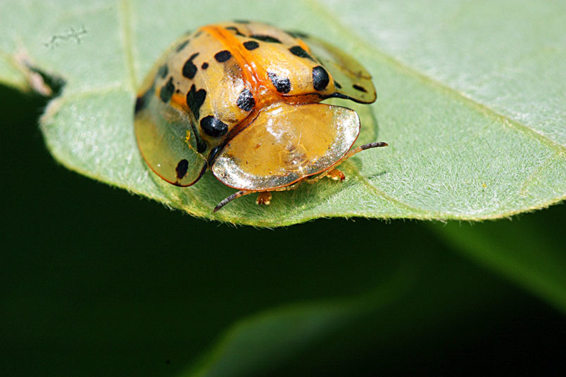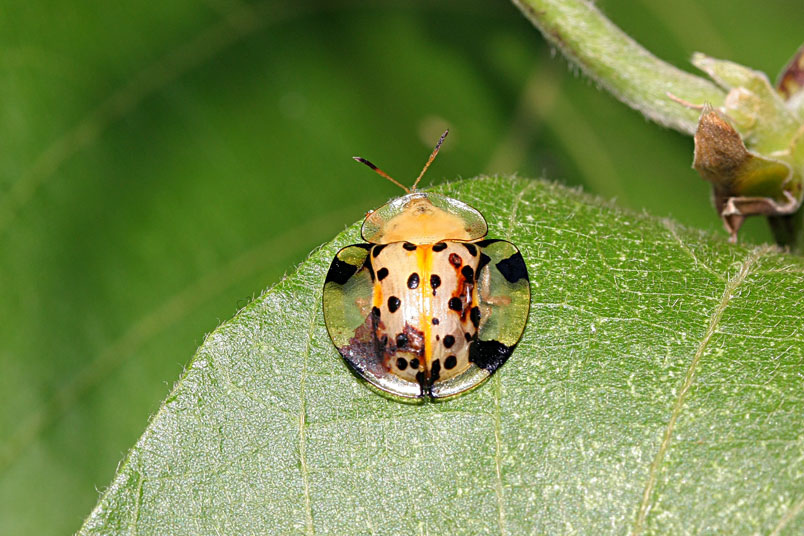 大黑星龜金花蟲,鞘翅目,金花蟲科,圓龜金花蟲屬,為完全變