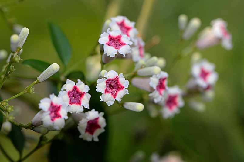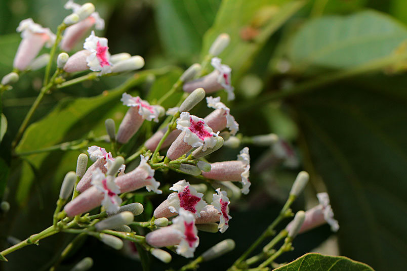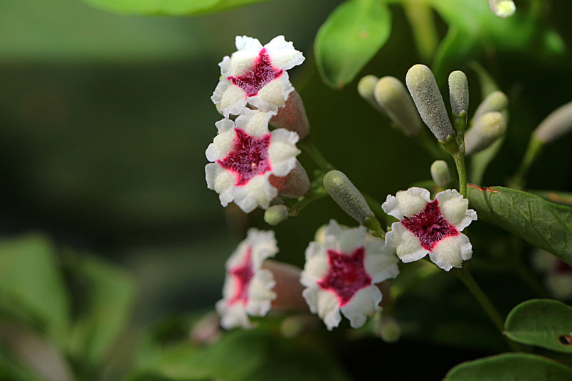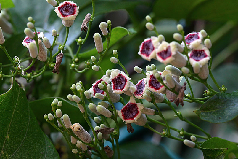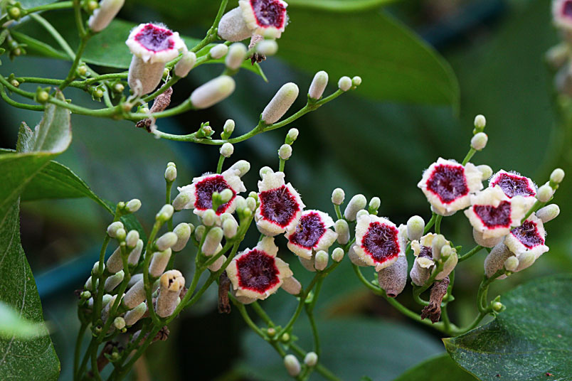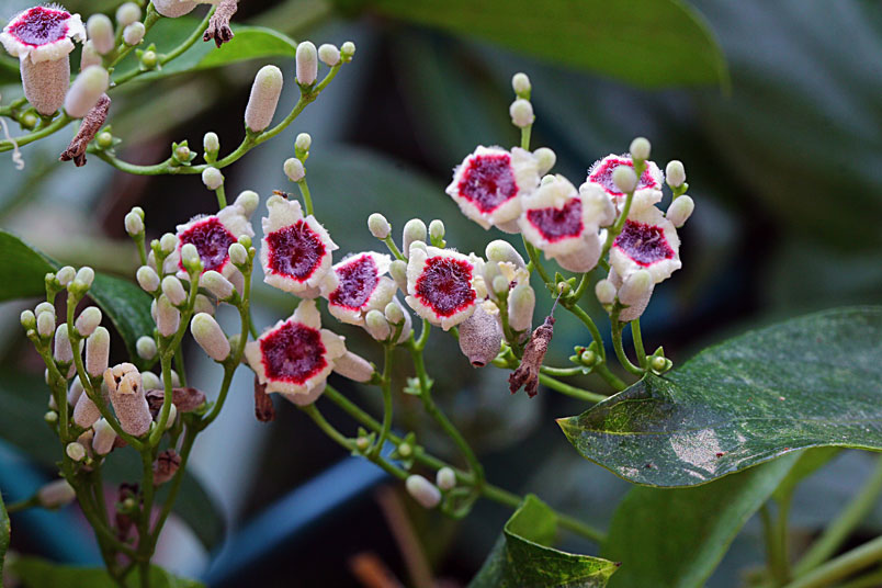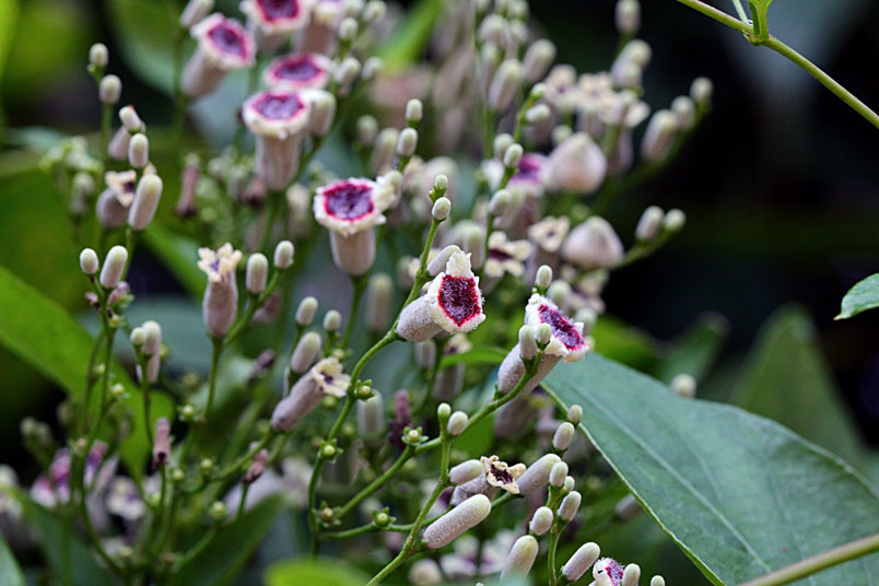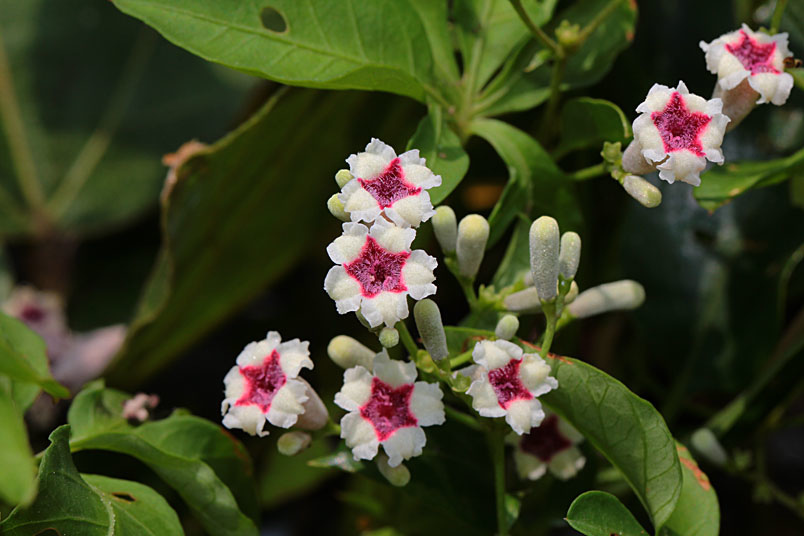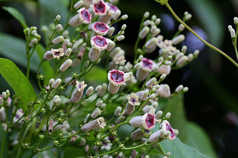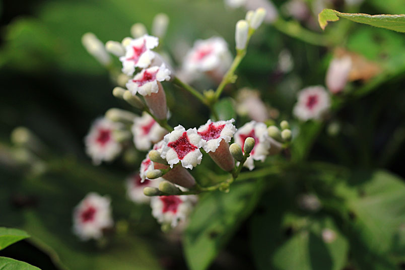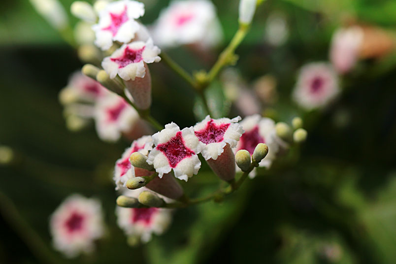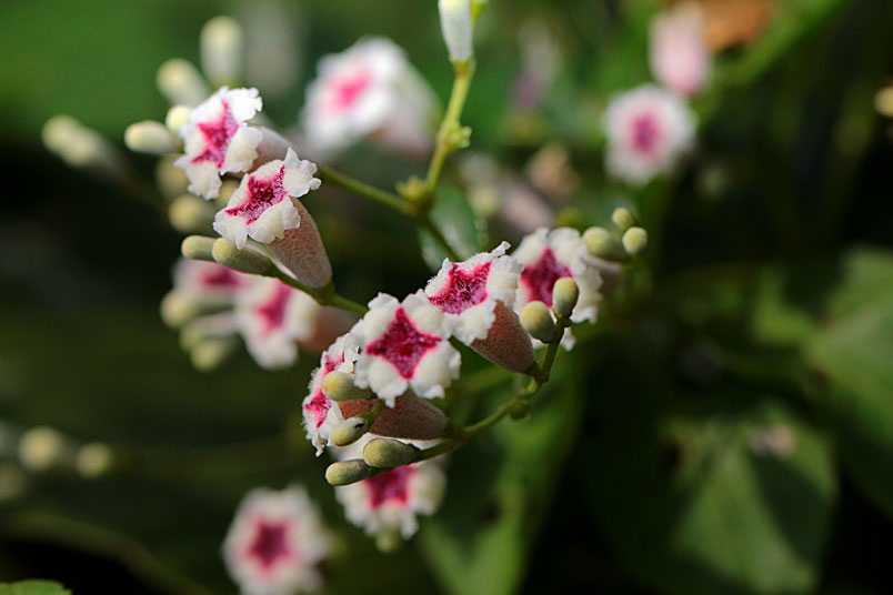 花期以夏、秋季為主,圓錐狀聚繖花序,頂生或腋生,花為合瓣