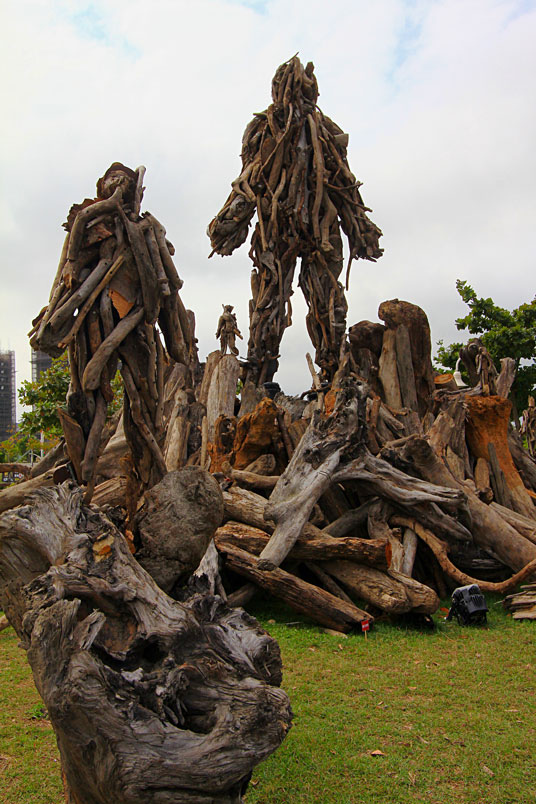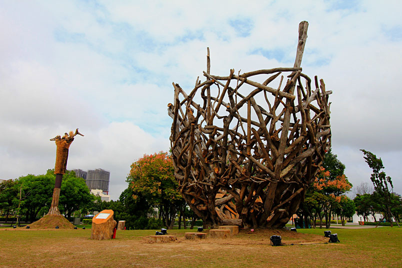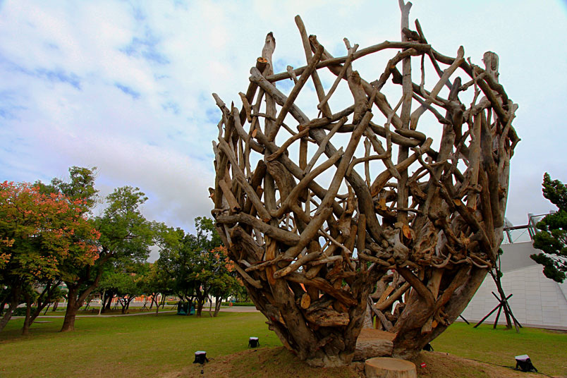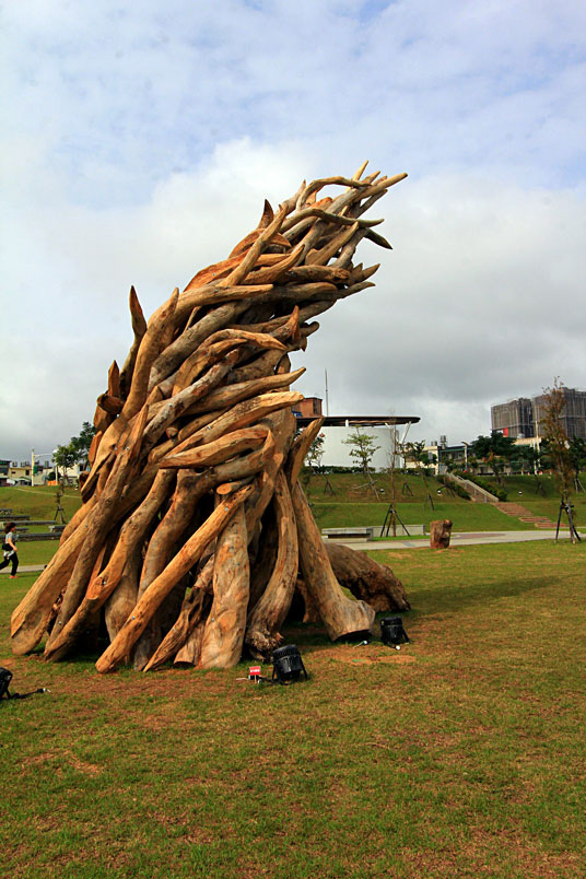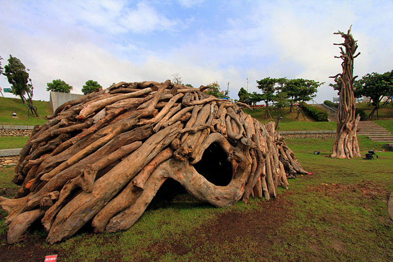 臺灣藝術家王文志,本次藝術節創作了「天皿」,利用漂流木特