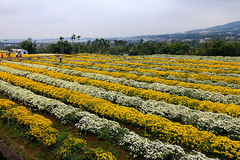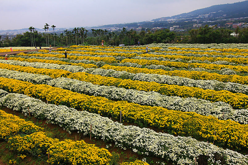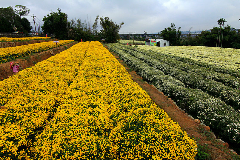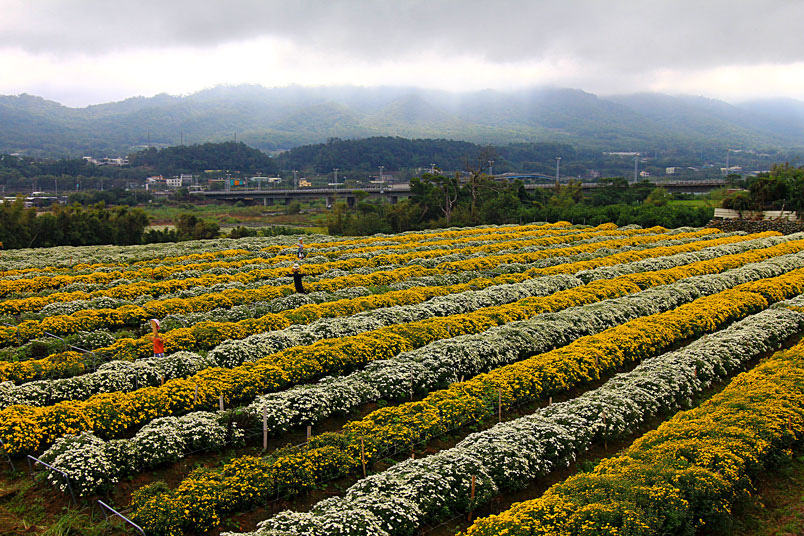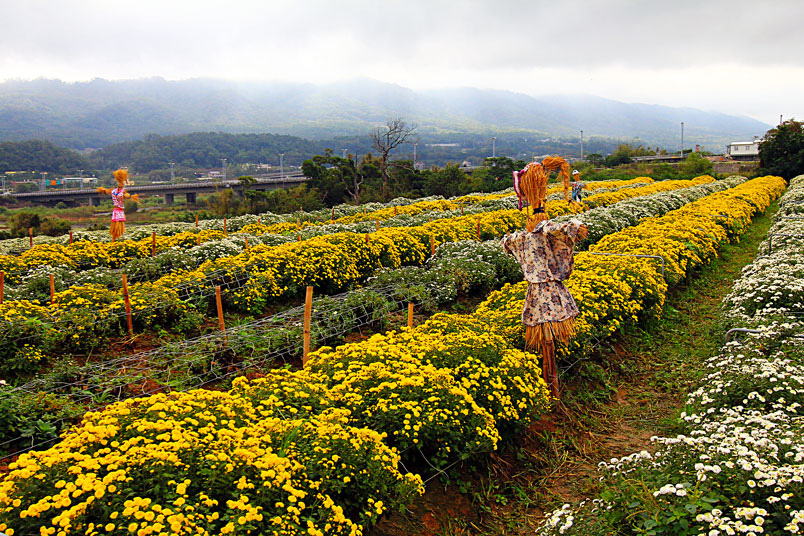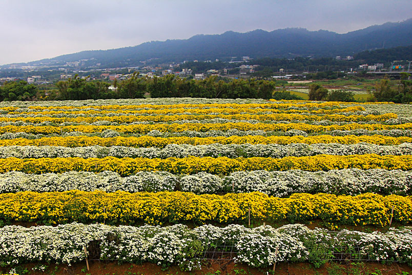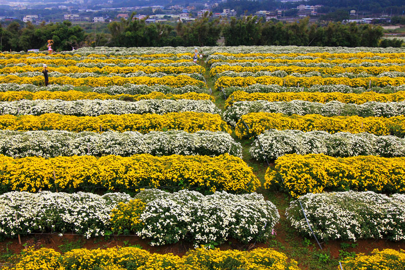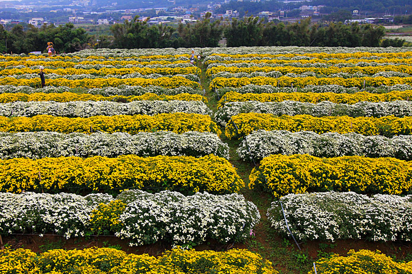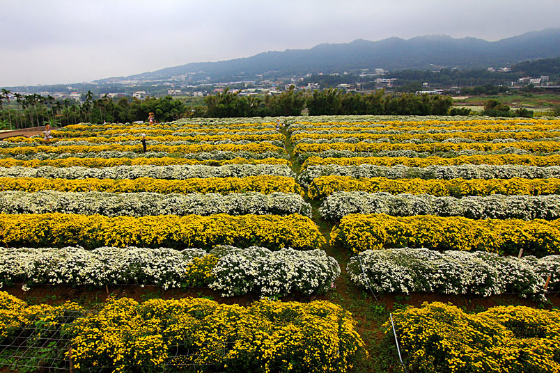 九湖台地杭菊花海,大地有如鋪上白色、黃色繽紛地毯,浪漫地景美不勝收。