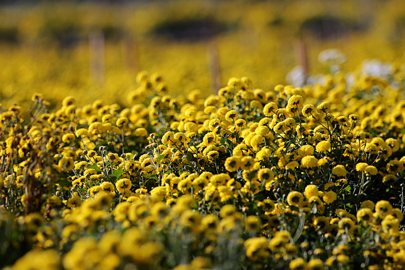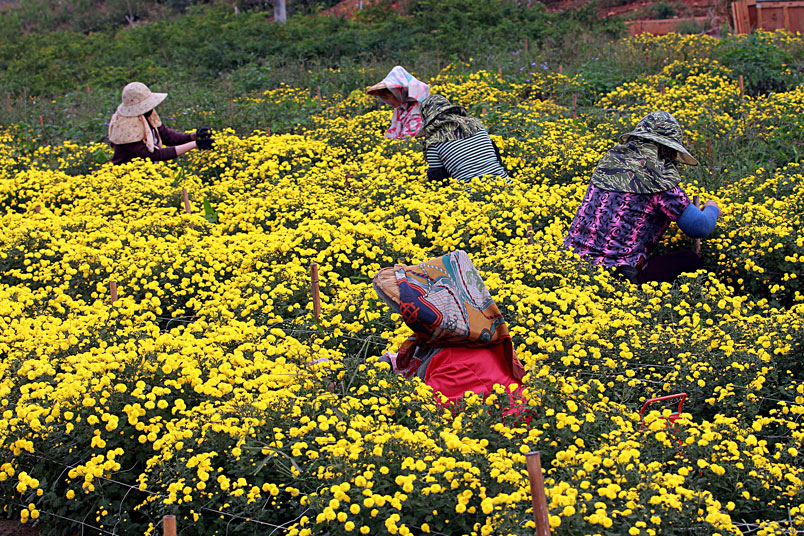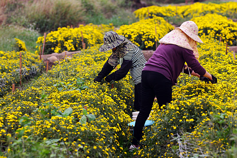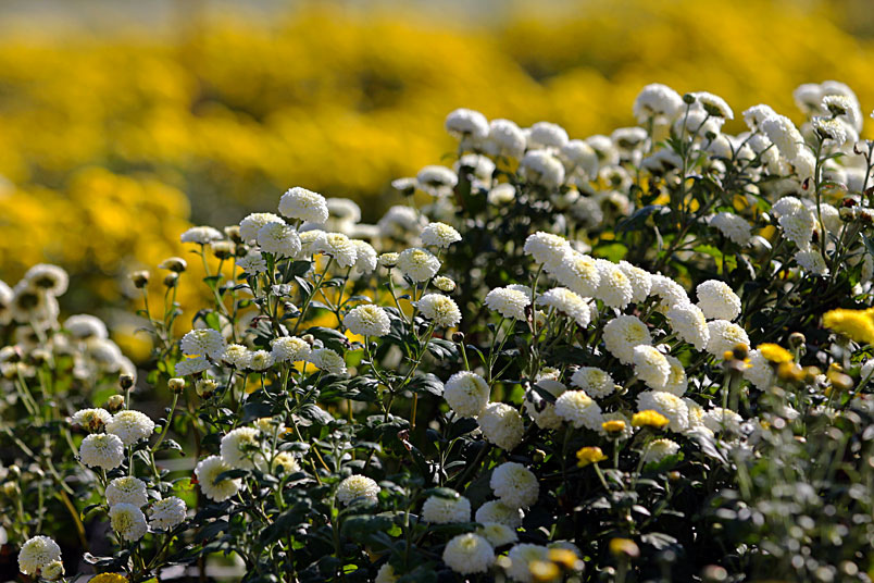 每年的11月中旬至12月上旬,杭菊花開時分,金黃色與雪白色花海