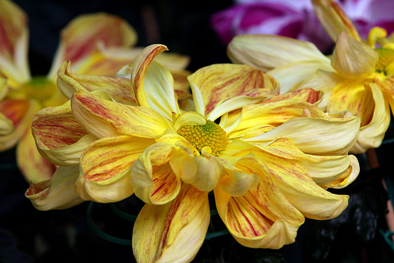 越山(白)的花瓣圍繞著黃色的花心,一層層緊緊相繞,有一種雍