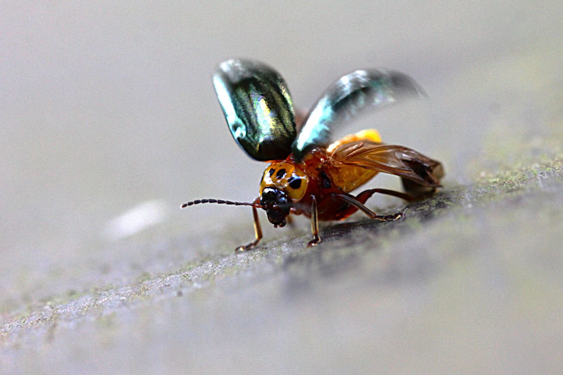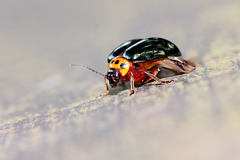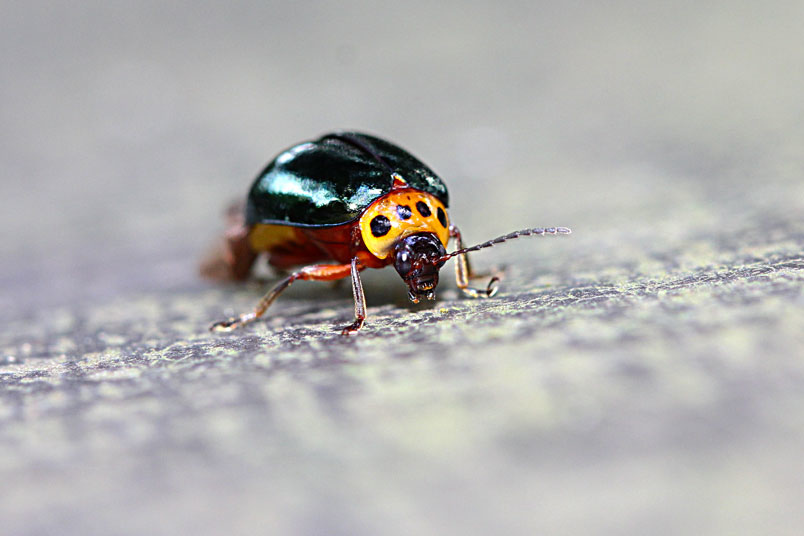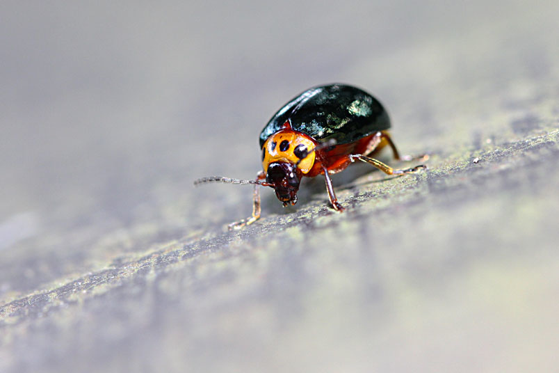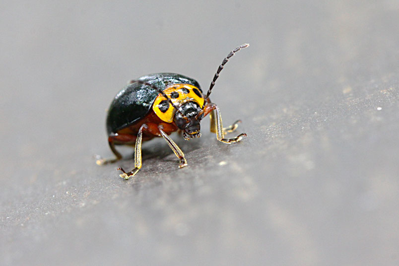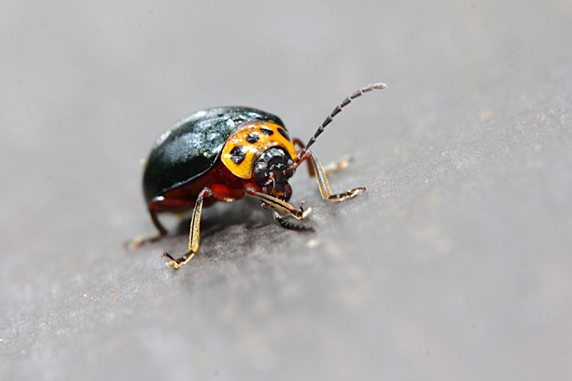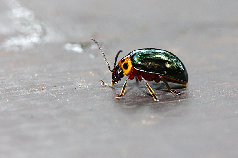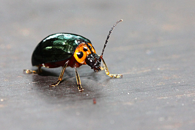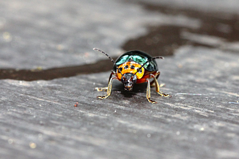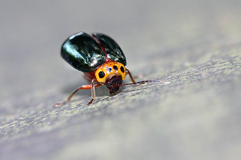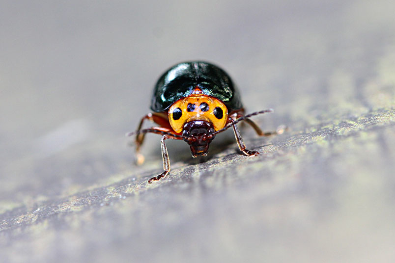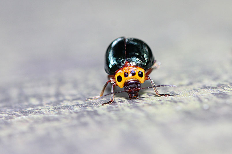 具一小黑斑;翅鞘深綠色具金屬光澤;腹面黃褐色,腹部各節