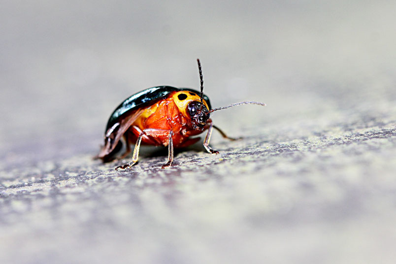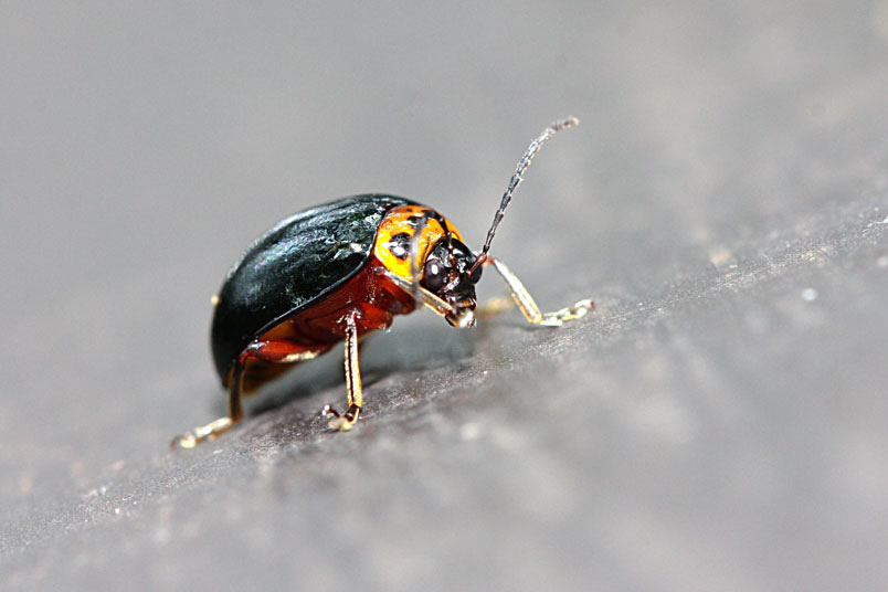 體長7.0~8.0mm,頭部黑色,觸角第一至第三節暗褐色;前胸背