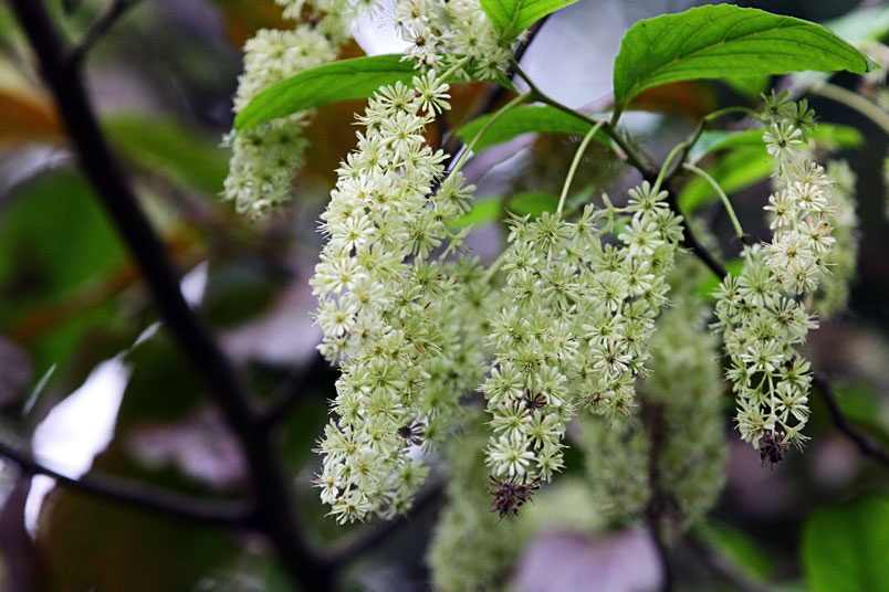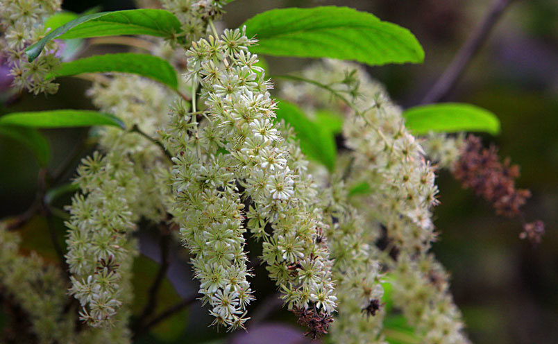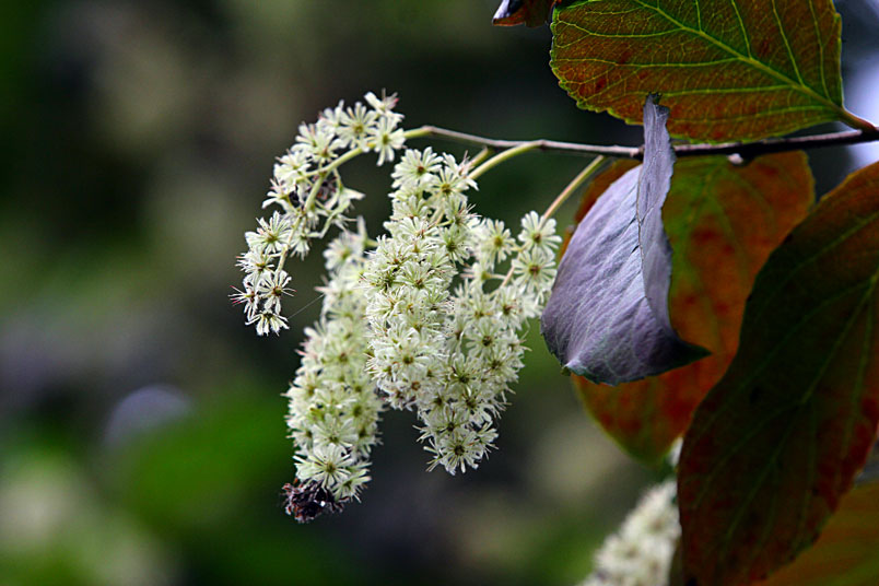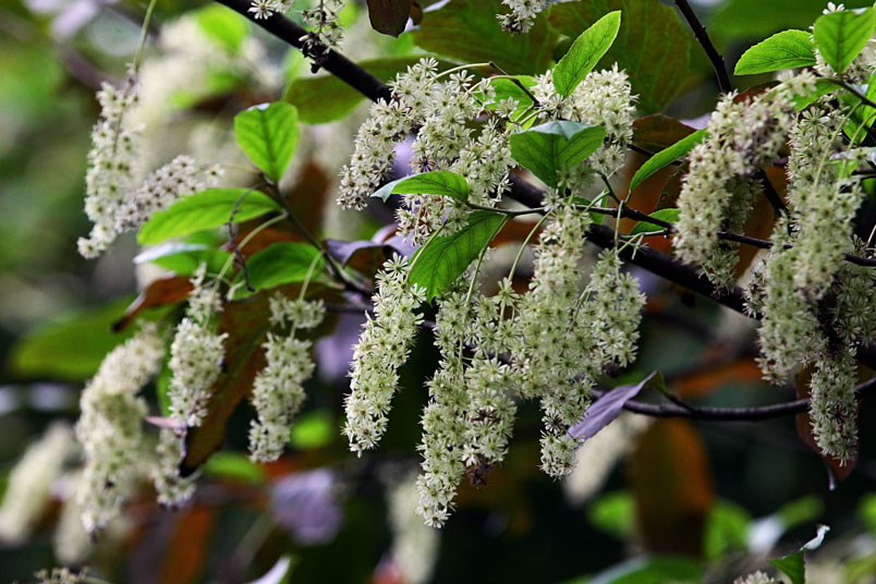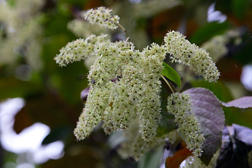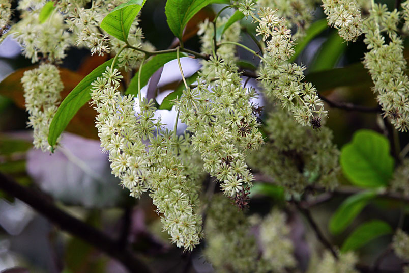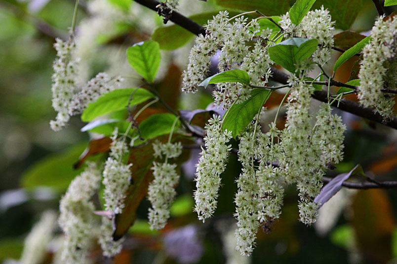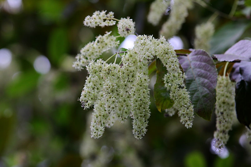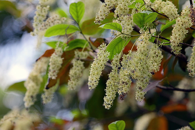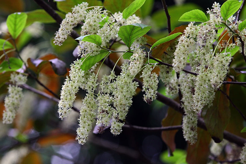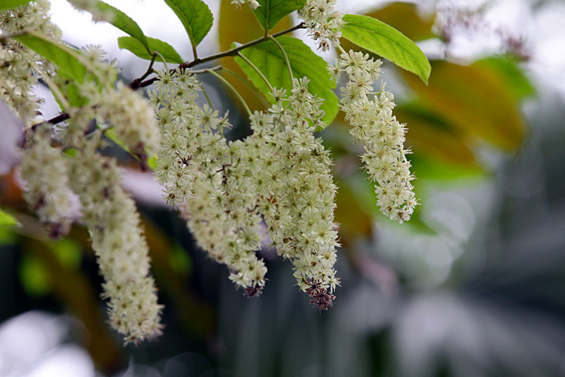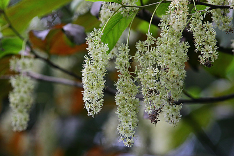 天料木並不常見,平常看就是很普通的綠樹一株,秋天開起一串