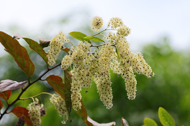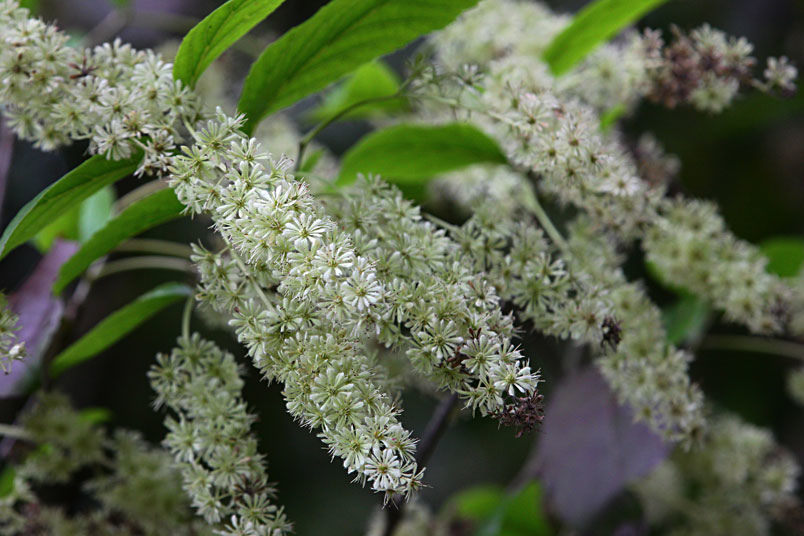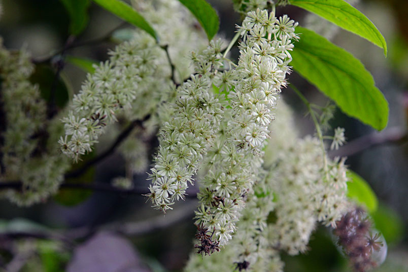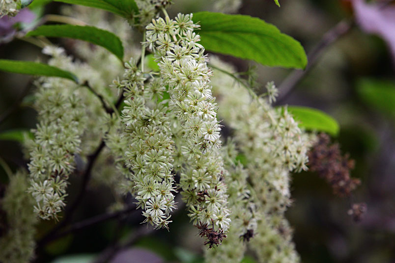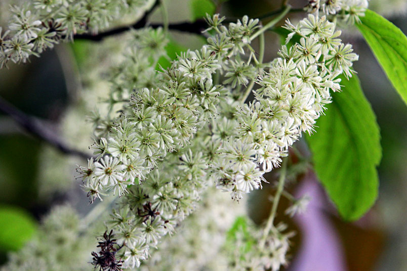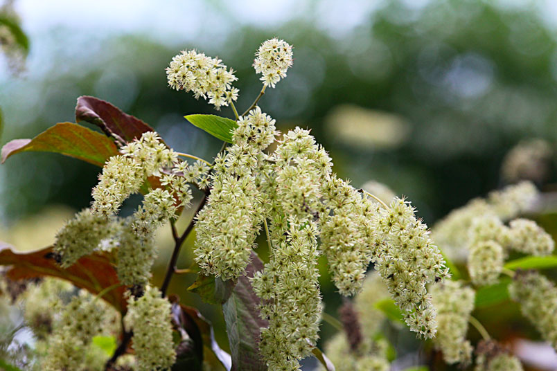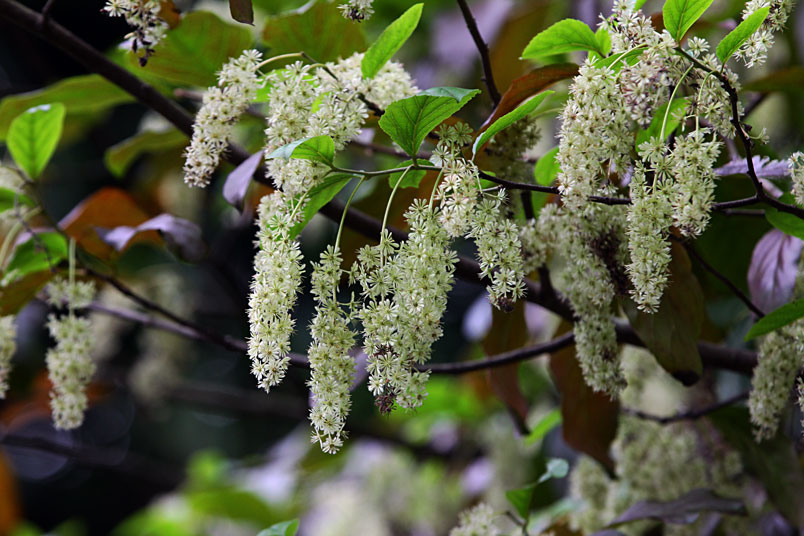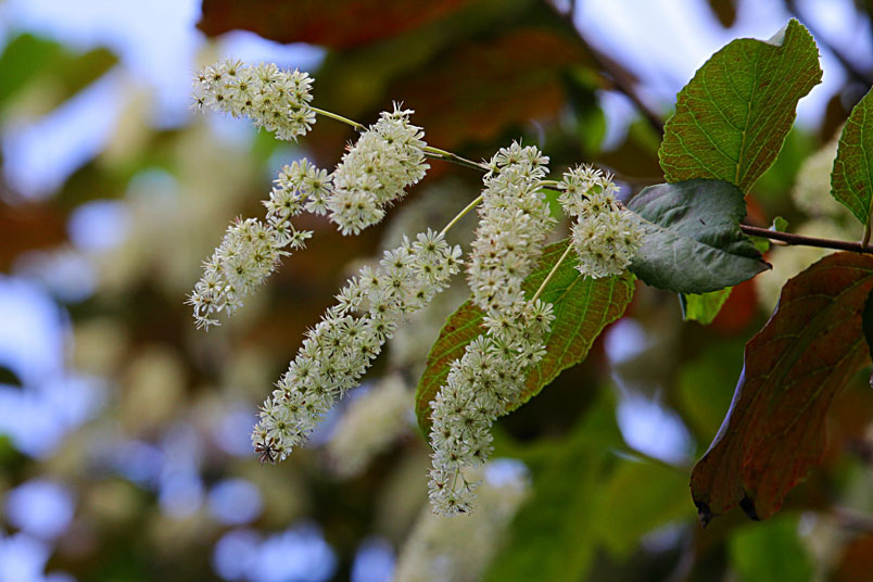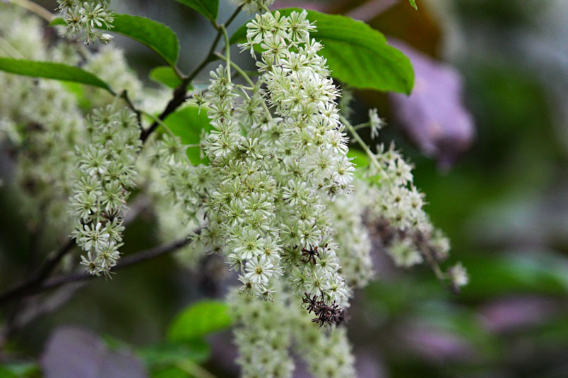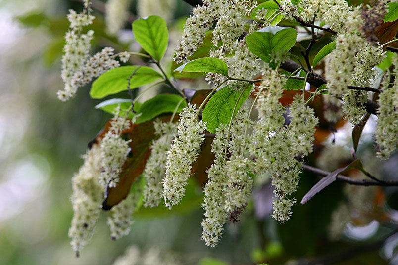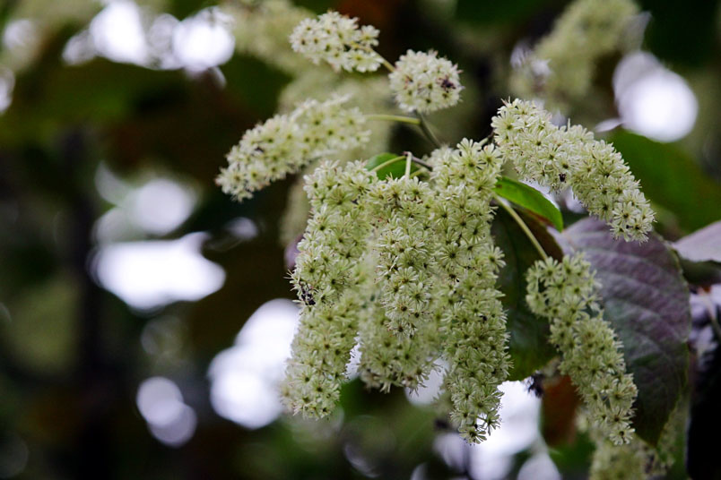 天料木並不常見,平常看就是很普通的綠樹一株,秋天開起一串