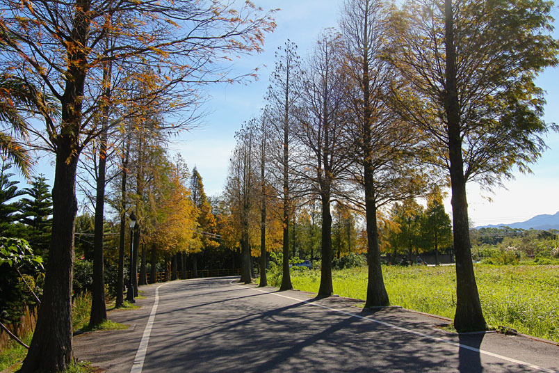 桃園市大溪區落羽松路,前身為石園路五五八巷,一公里長的落
