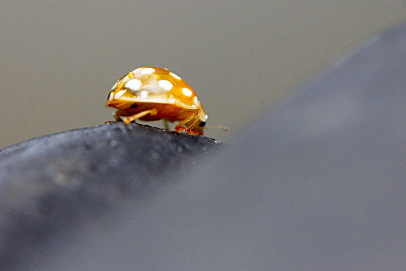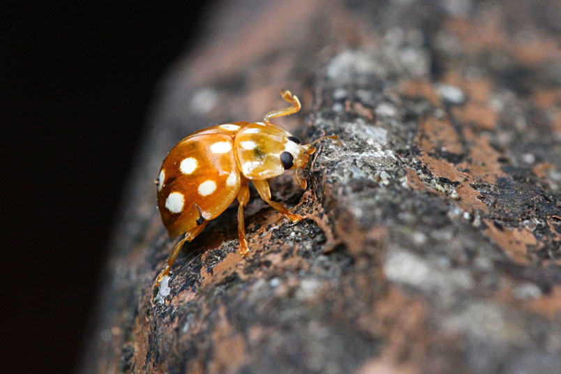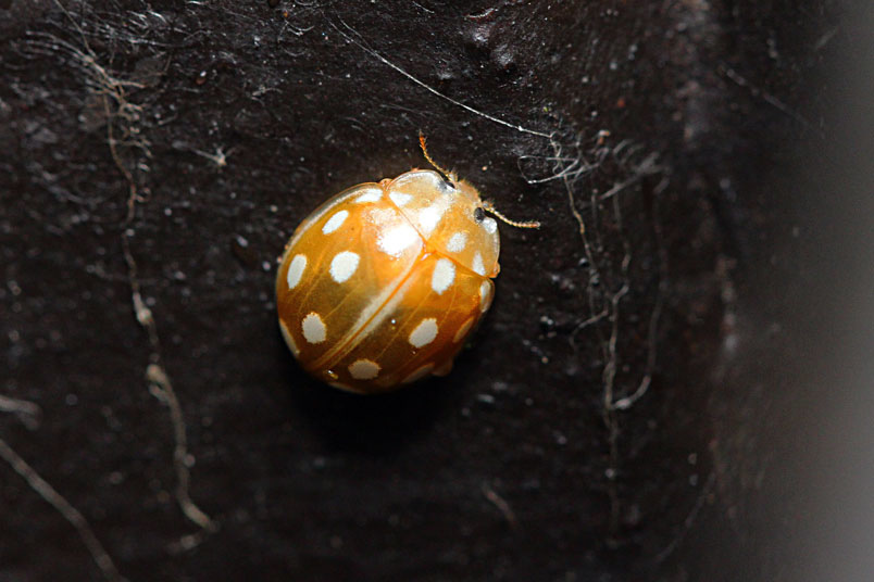 四斑裸瓢蟲,鞘翅目瓢蟲科,裸瓢蟲屬,以蚜蟲為食,為葷食性
