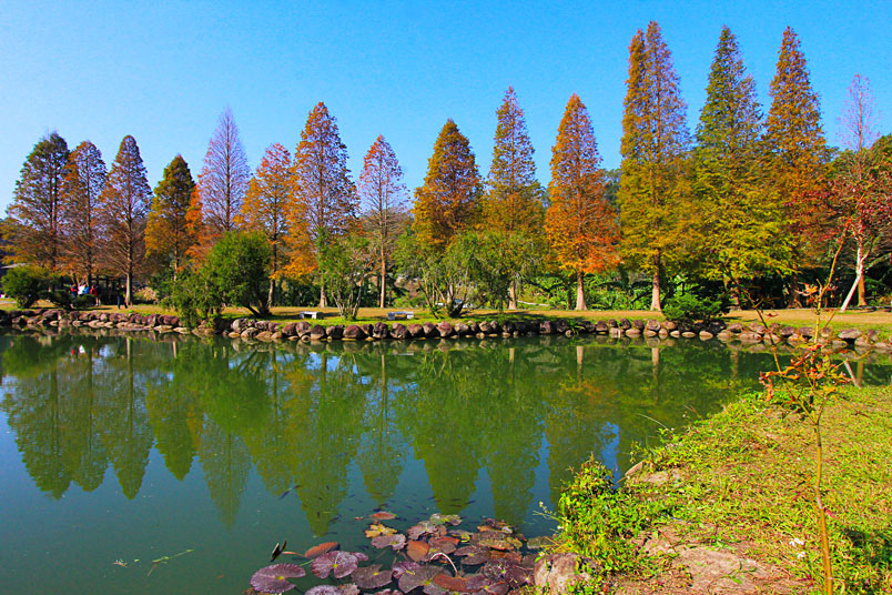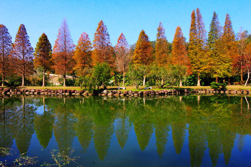 氛圍,濃縮了落羽松最美的水中景緻。環繞著水塘漫步,從各個