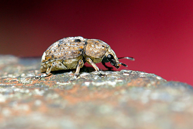 象鼻蟲,鼻蟲科。體長3.3~4.2mm,體色黑色,頭部小,部份嵌