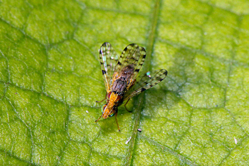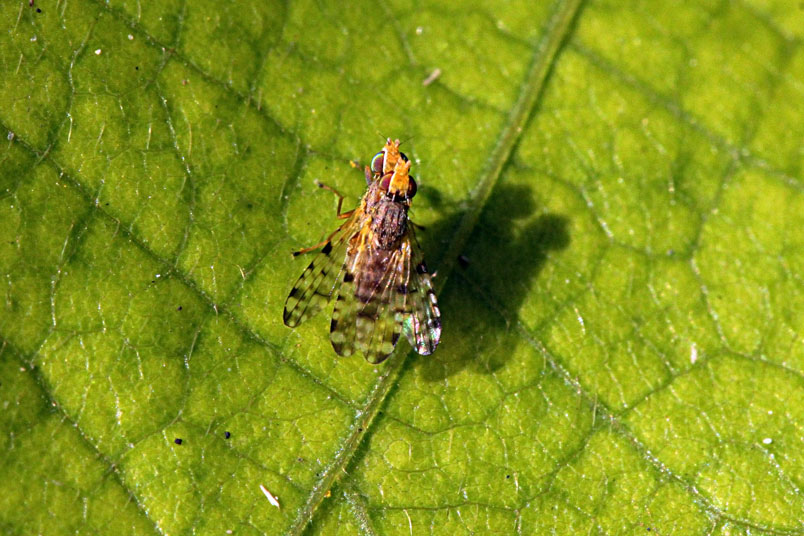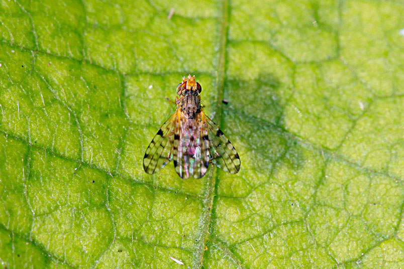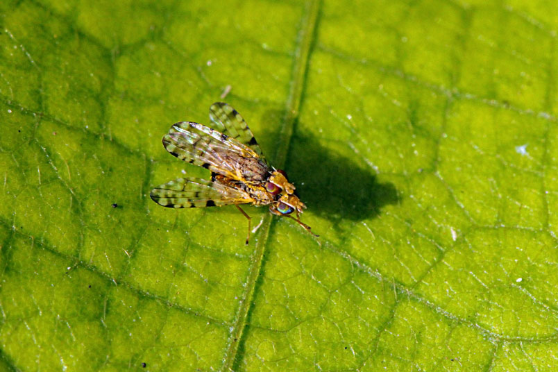 長鞘寬頭實蠅,果實蠅科。體長3.8~5mm,體色灰褐色,複眼具