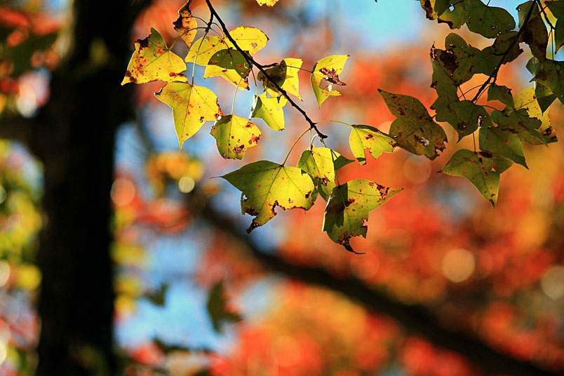 、黃、橘、紅等色澤錯落出現,色彩層次豐富的季節風情畫,令遊