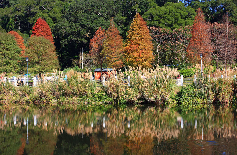 楓紅層層,在風景雅致的慈湖漫步繞上一圈,很是舒服。