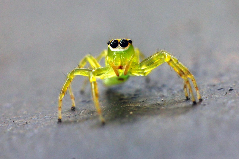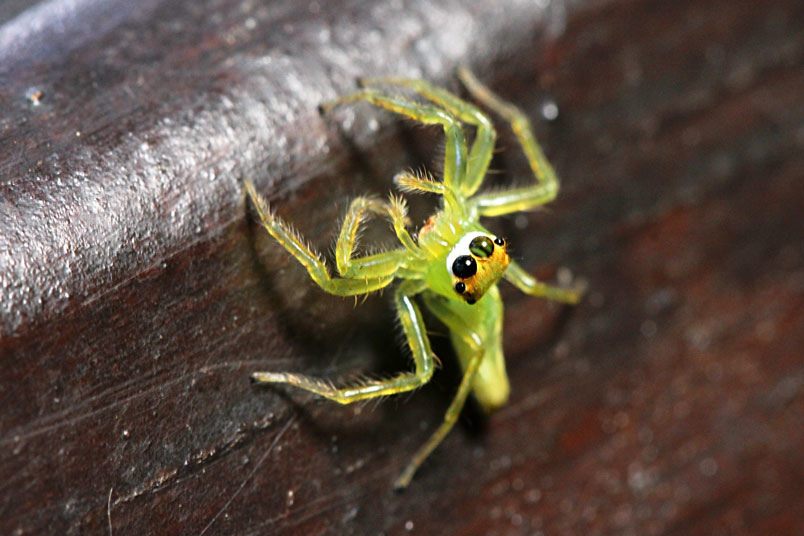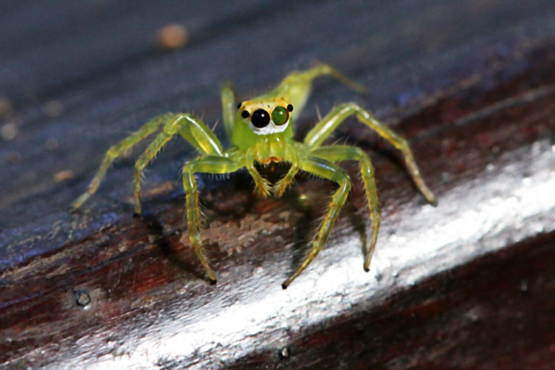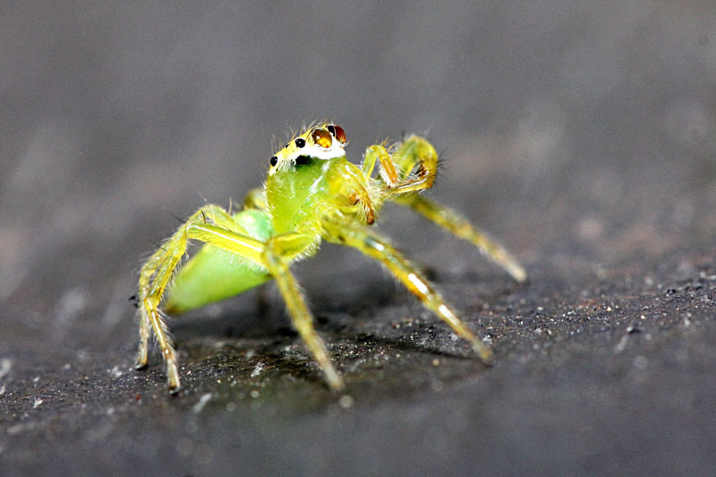 還是步足較一般蠅虎科長,以致活動不便,比其他蠅虎好拍。