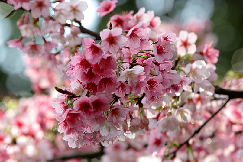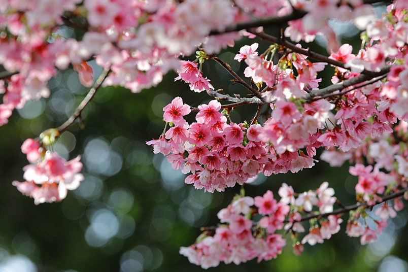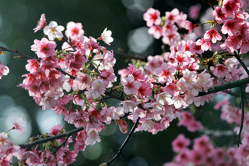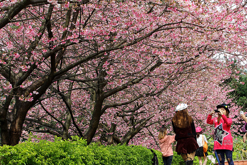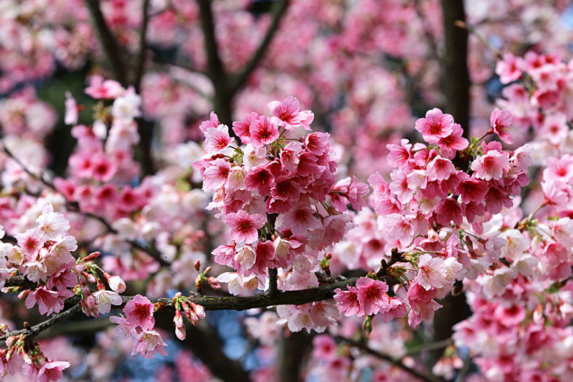 最近氣候和煦,50株三色櫻如期盛開,開花大約九成,預計週末