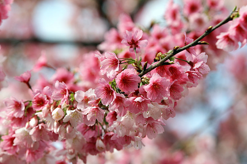 三色櫻其實就是我們所說的寒櫻,三色指的是花朵初綻為白色