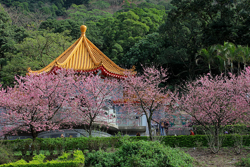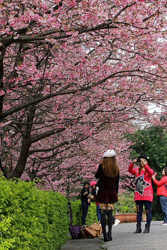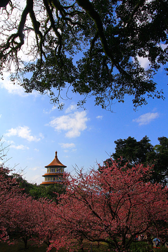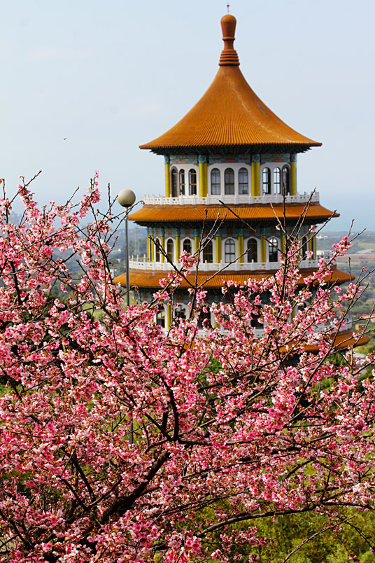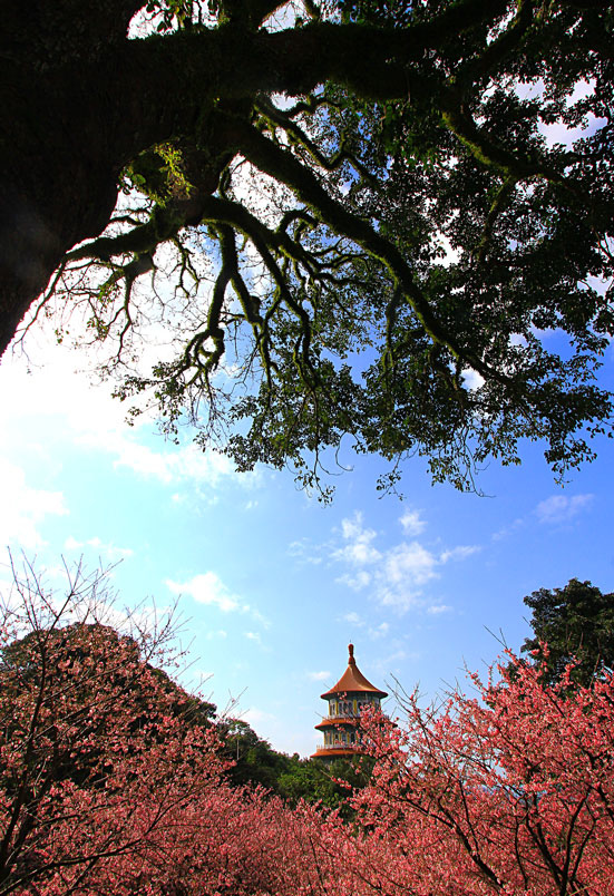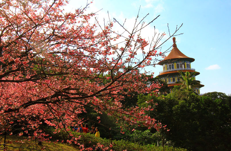 浪漫,遊客紛紛湧上無極天元宮,就為了爭睹粉嫩櫻花的風采。