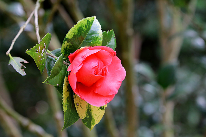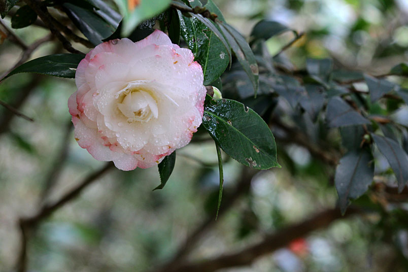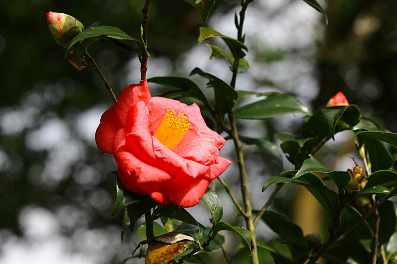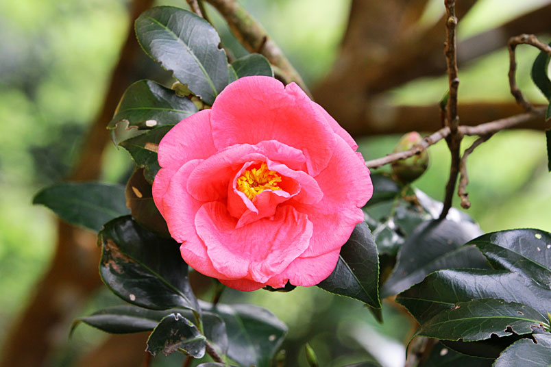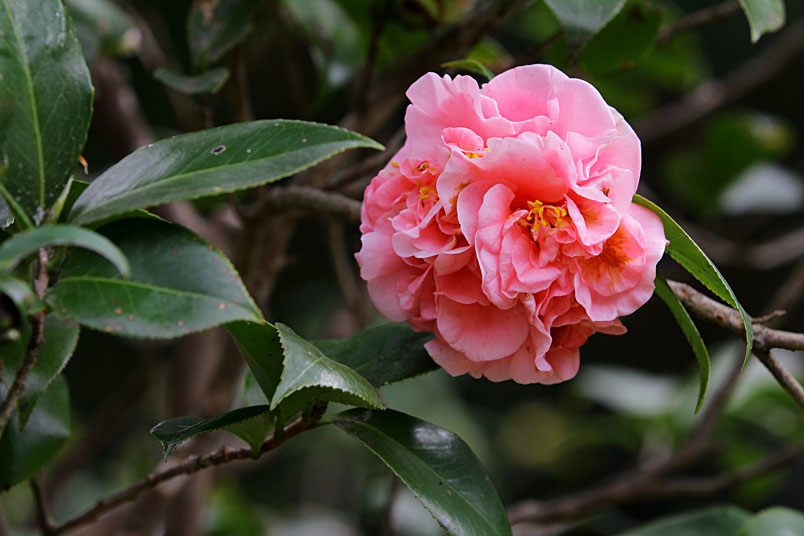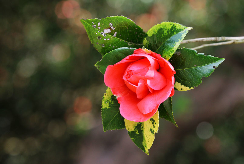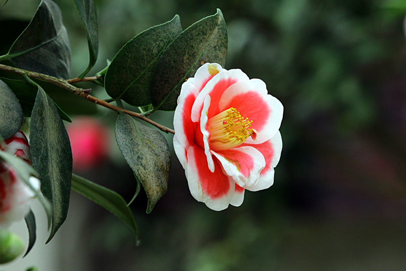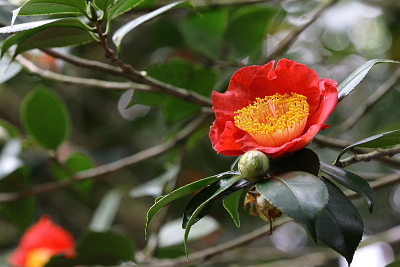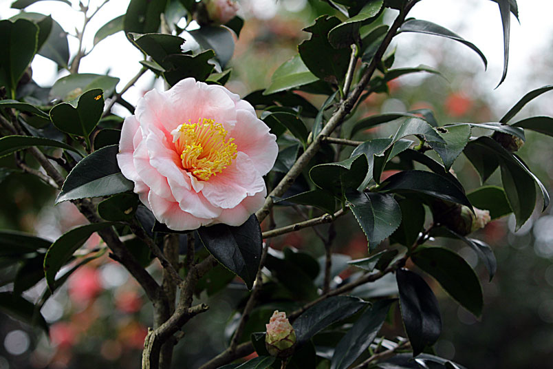 唯有山茶偏耐久,綠枝又放數枝紅。