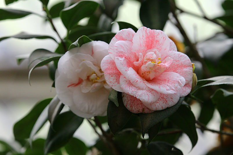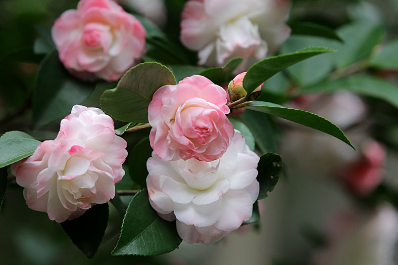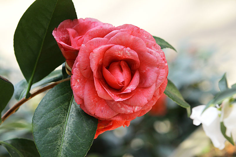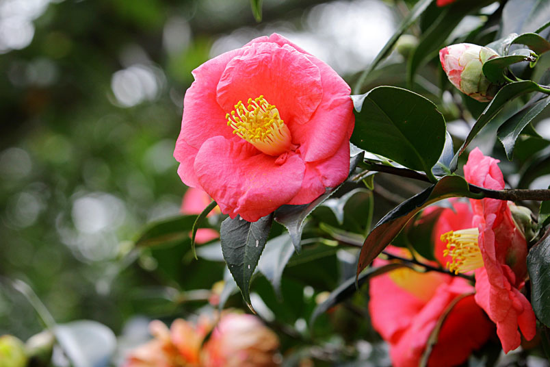 漫步茶花小徑散步道、欣賞各式茶花的千嬌百媚與雍容華貴花形,