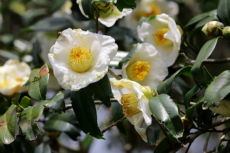 進種、西方引進種等。花期從十一月到二月,茶花姿美色艷,富麗