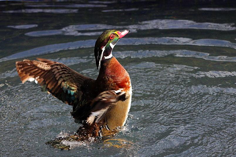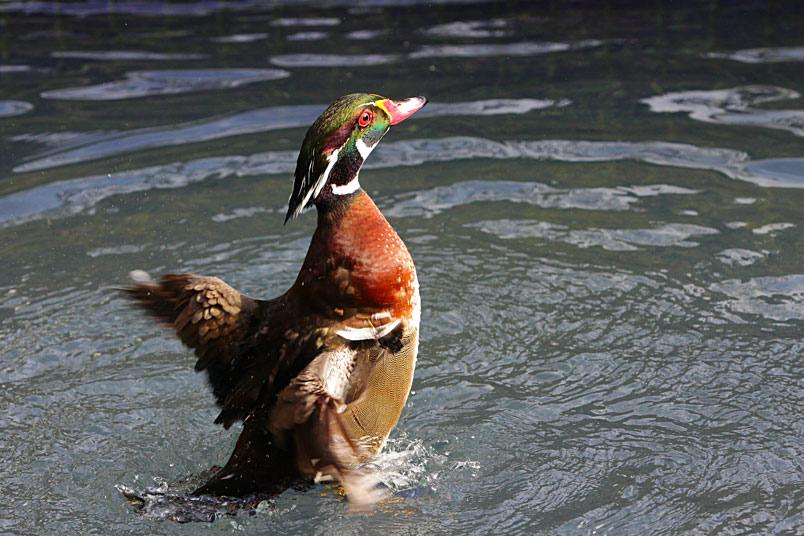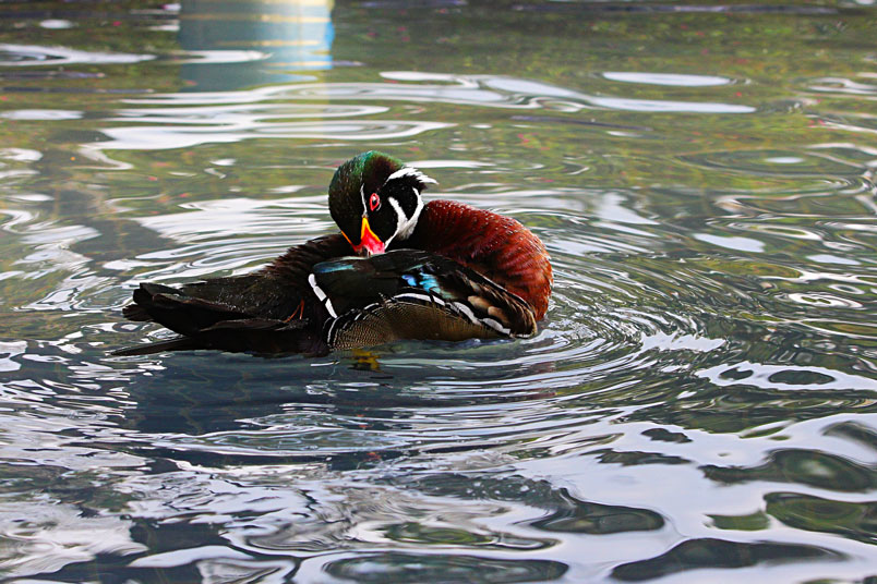 麗的水鴨,因為僅見於北美大陸,故稱之為北美鴛鴦、美州木鴨。
