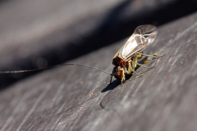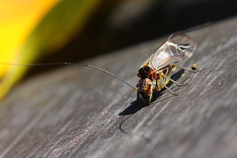 有翅型成蟲一般秋冬季節出現,但數量不多,通常獨棲。