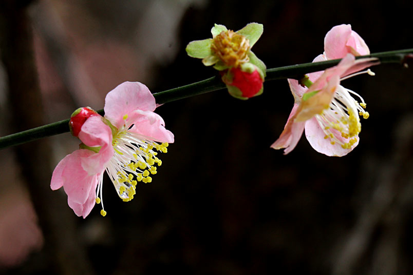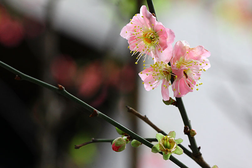 宮粉梅是觀賞型花梅,開花繁密,花色淡紅,尤其難得的是能散