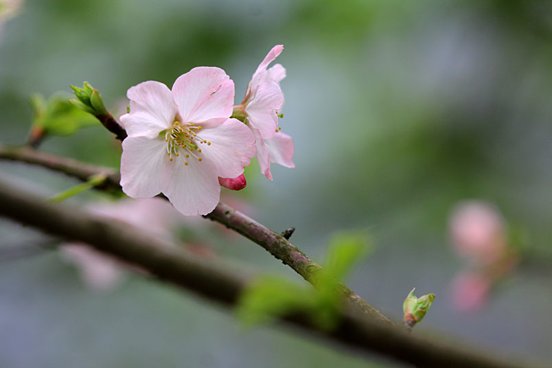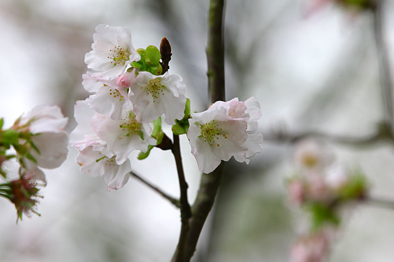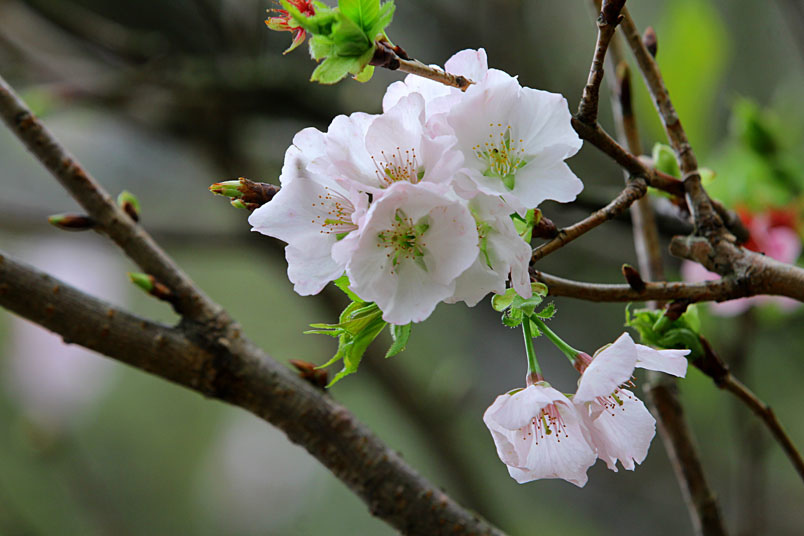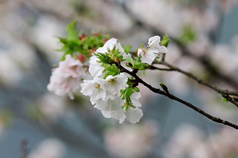 墨染櫻花最特殊之處,是它白色花瓣中間又帶有淡淡粉紅,彷彿