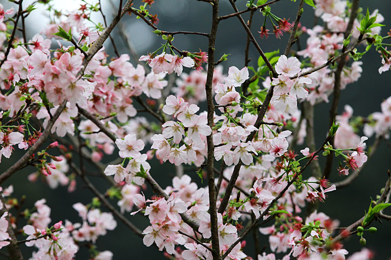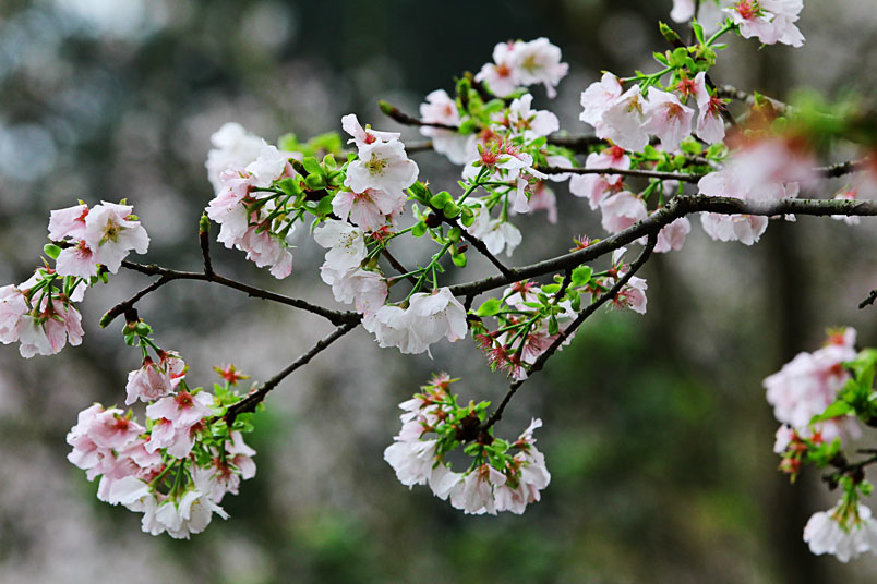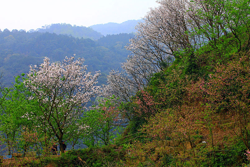 熊空櫻花林種植的櫻花品種繁多,每個品種花期不同,輪番綻放