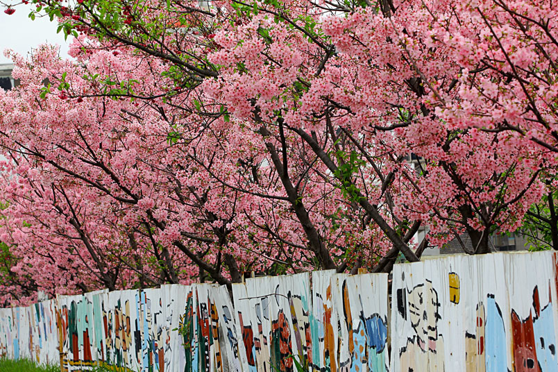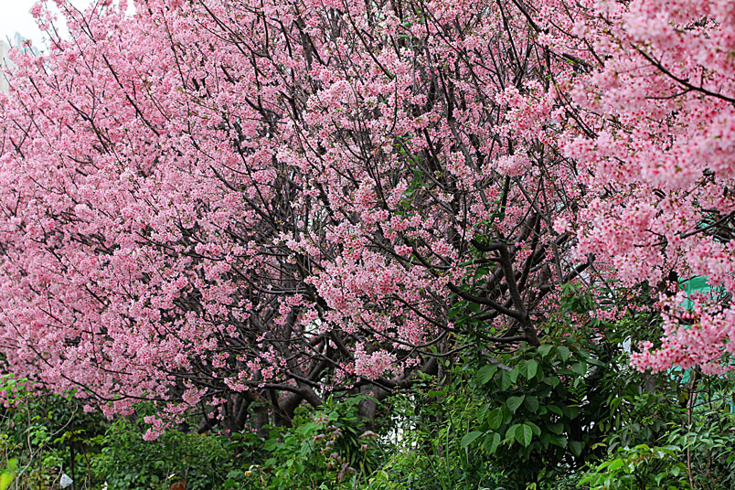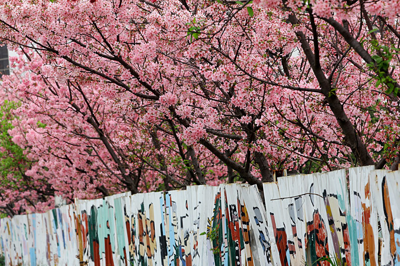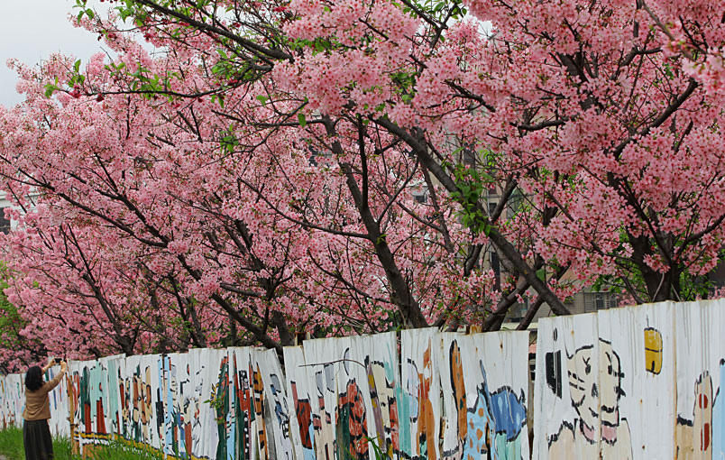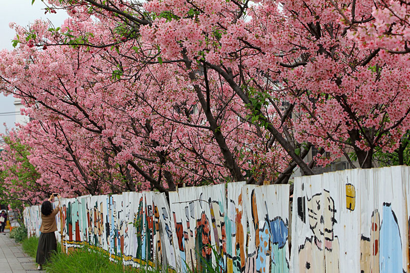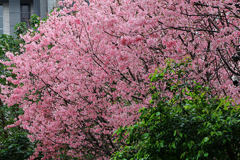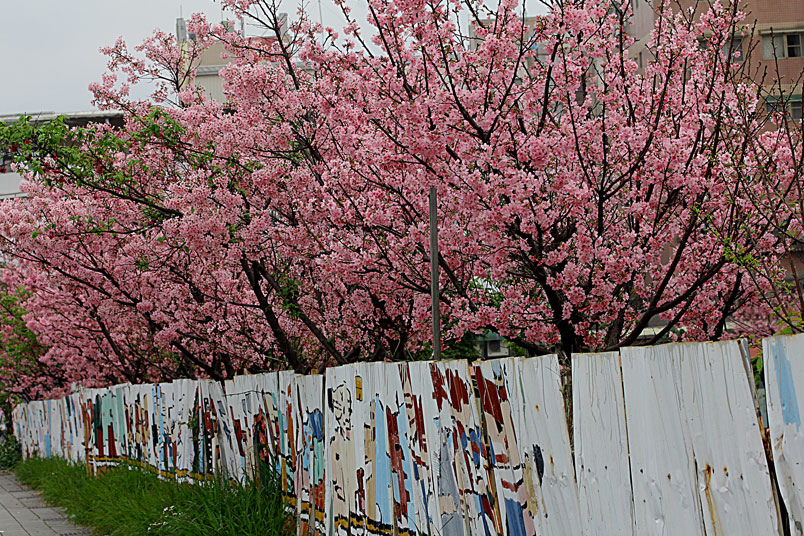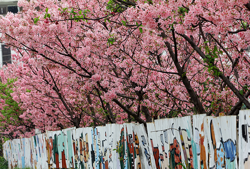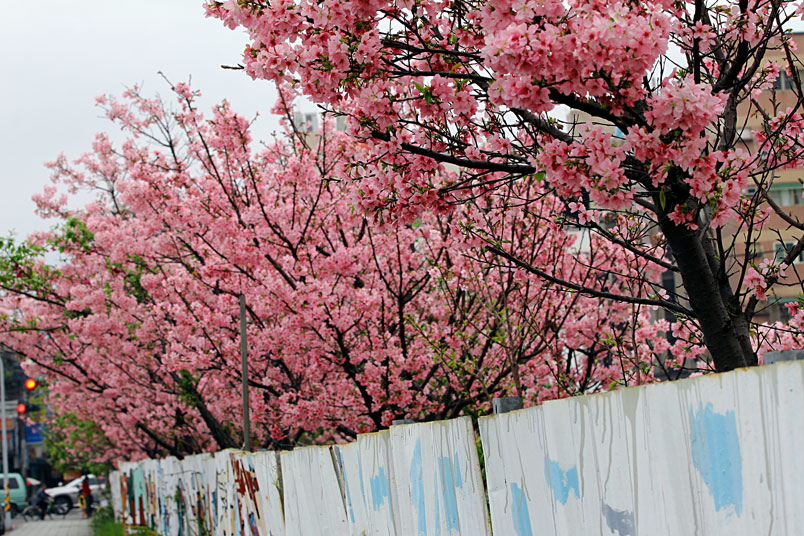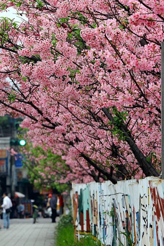 盛放,粉粉嫩嫩的顏色,讓人見了有談戀愛的感覺,路過的人都會