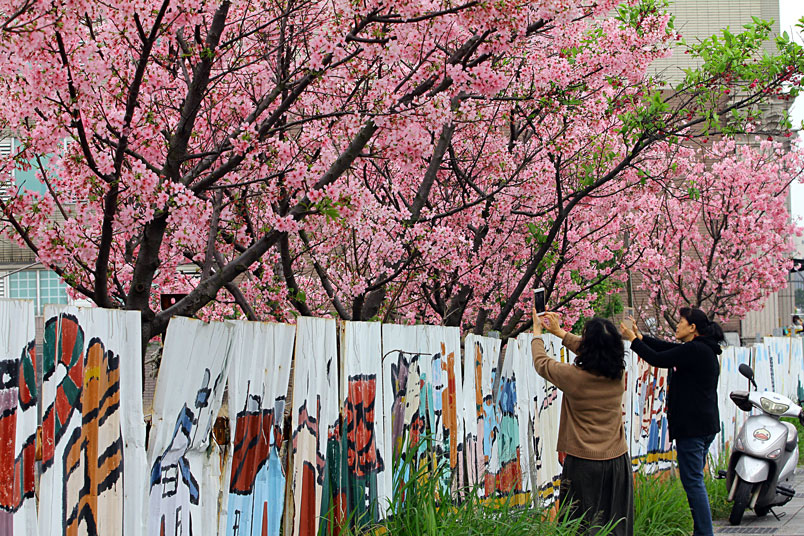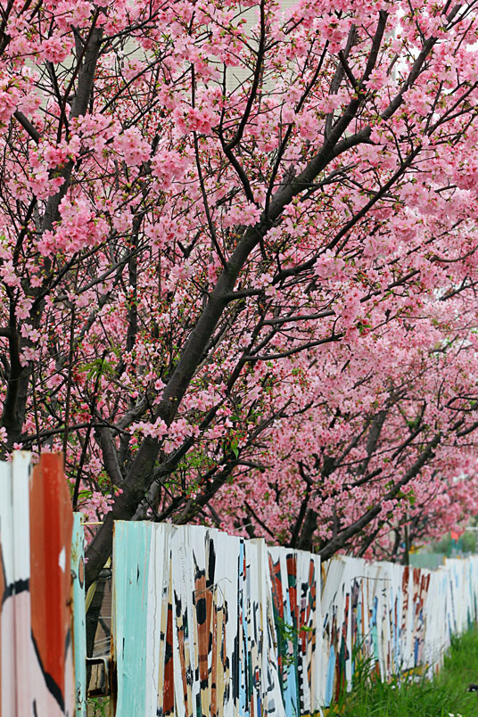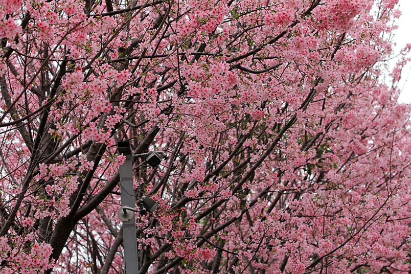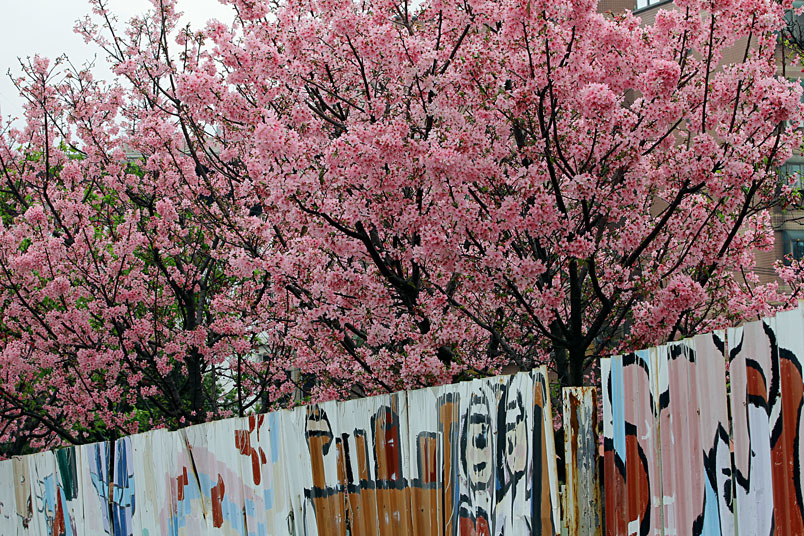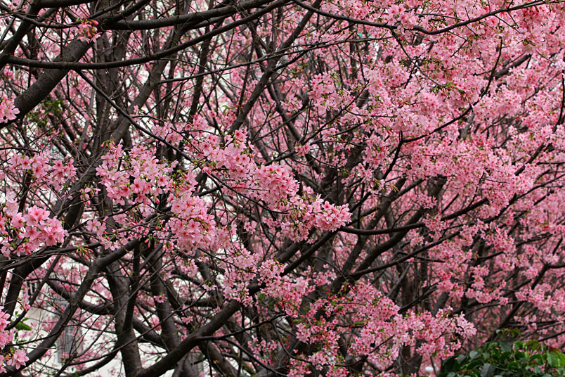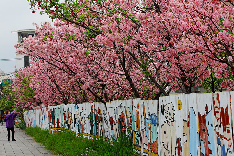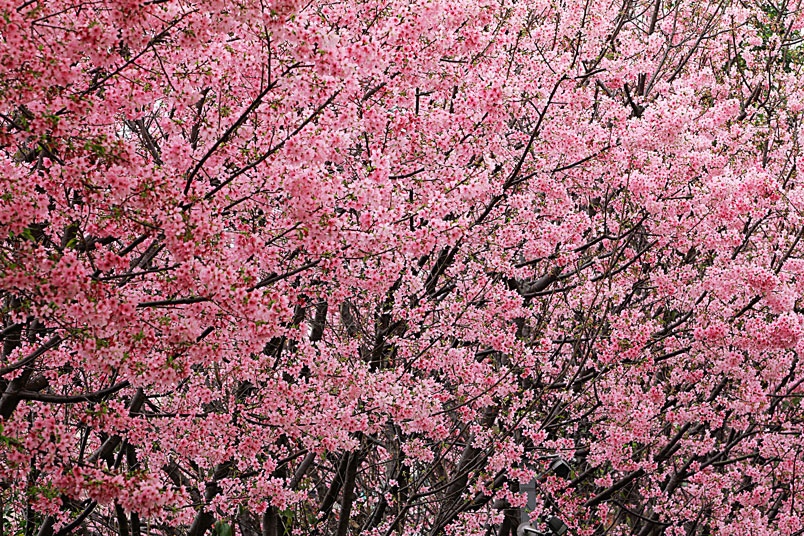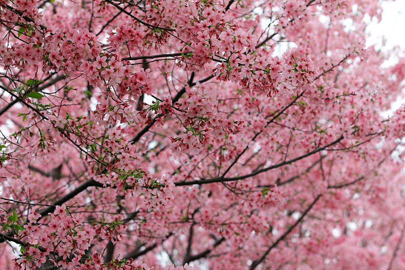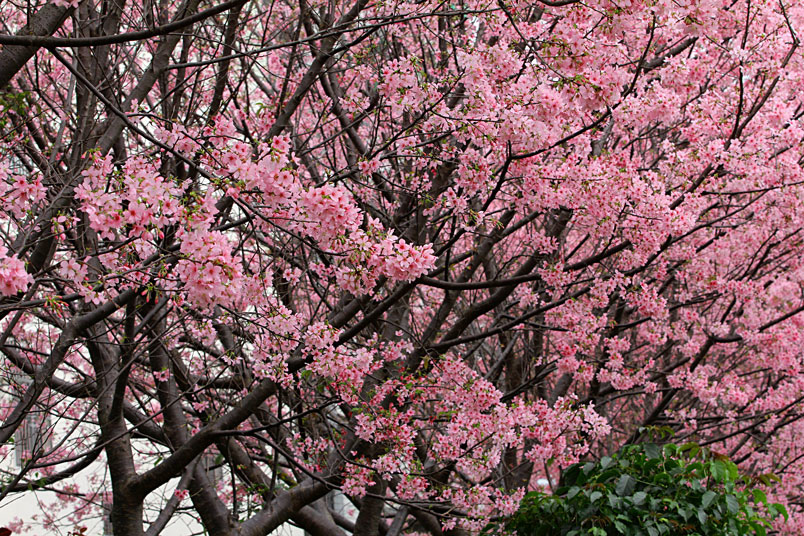 盛放,粉粉嫩嫩的顏色,讓人見了有談戀愛的感覺,路過的人都會