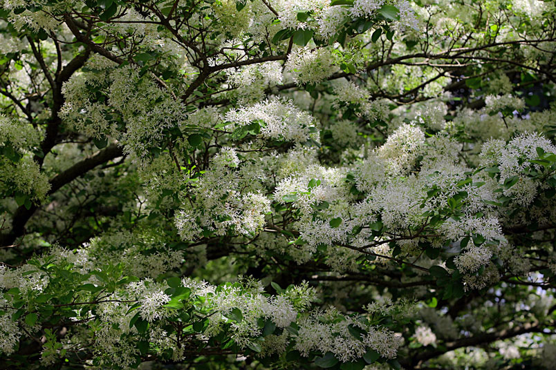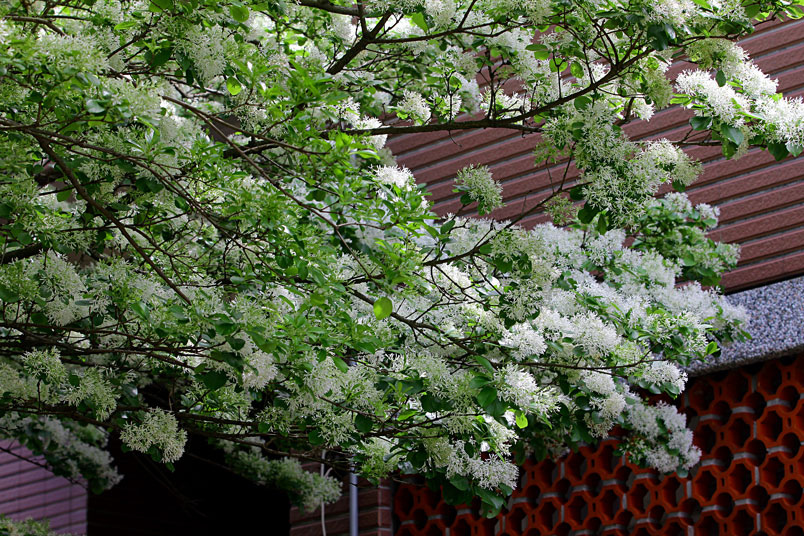 美麗的紫藤而出名,其實公園裡的流蘇盛開時,滿樹白色小花如雪