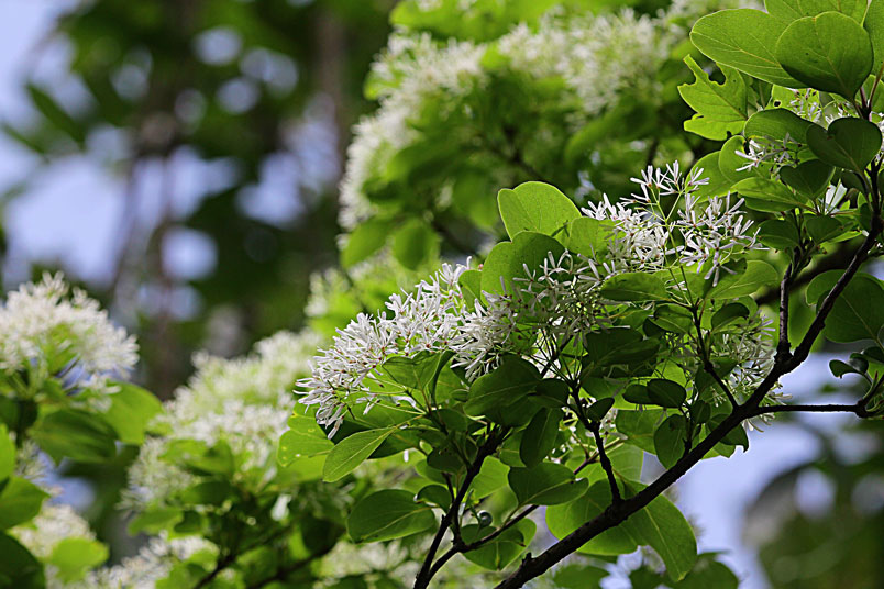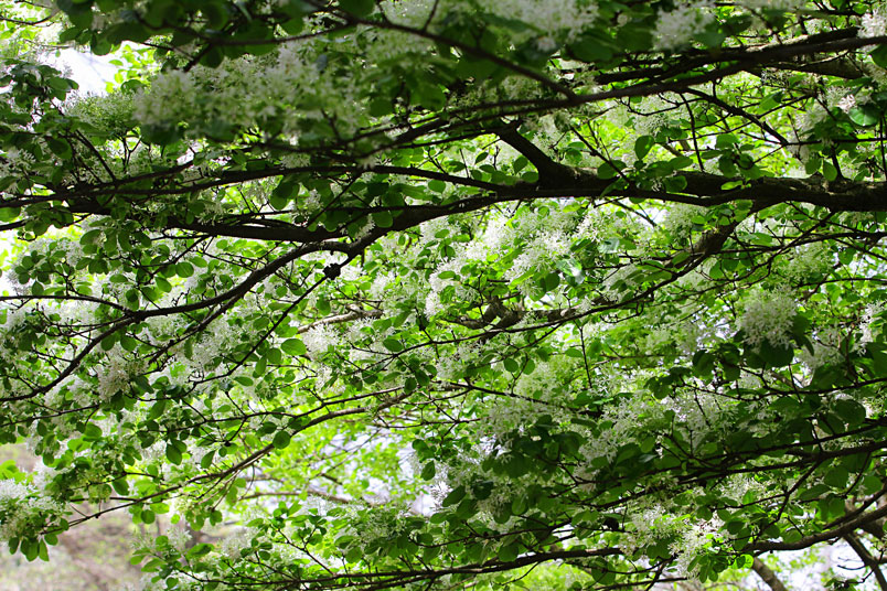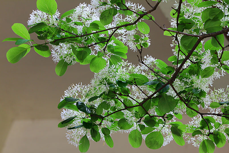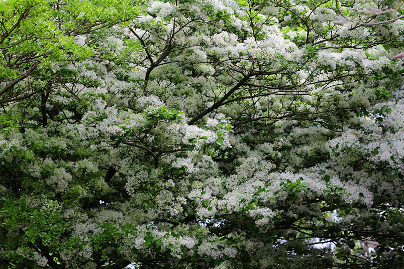 有「四月雪」美譽的流蘇花,已悄悄開放了,彷彿皚皚白雪堆滿枝