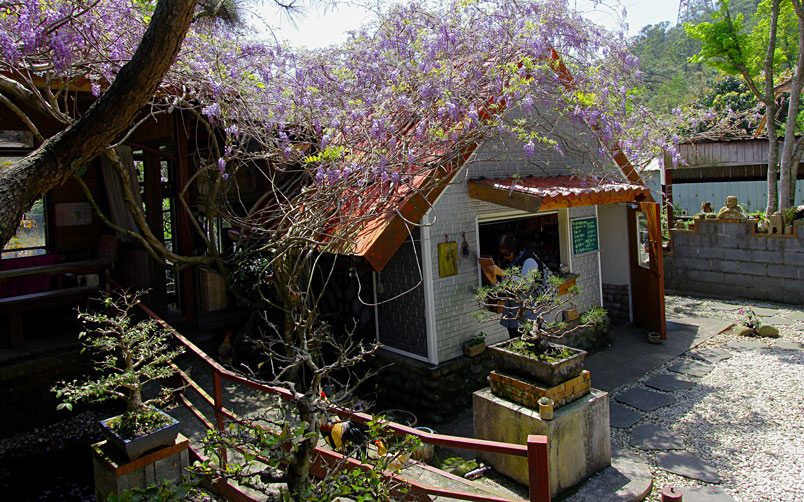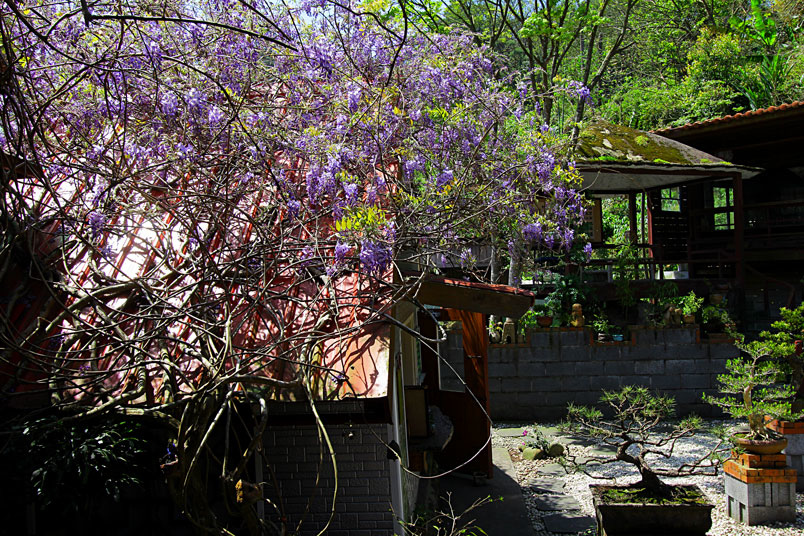 月中到清明前後紫藤花盛開,將整個木造空間渲染成紫色浪漫。