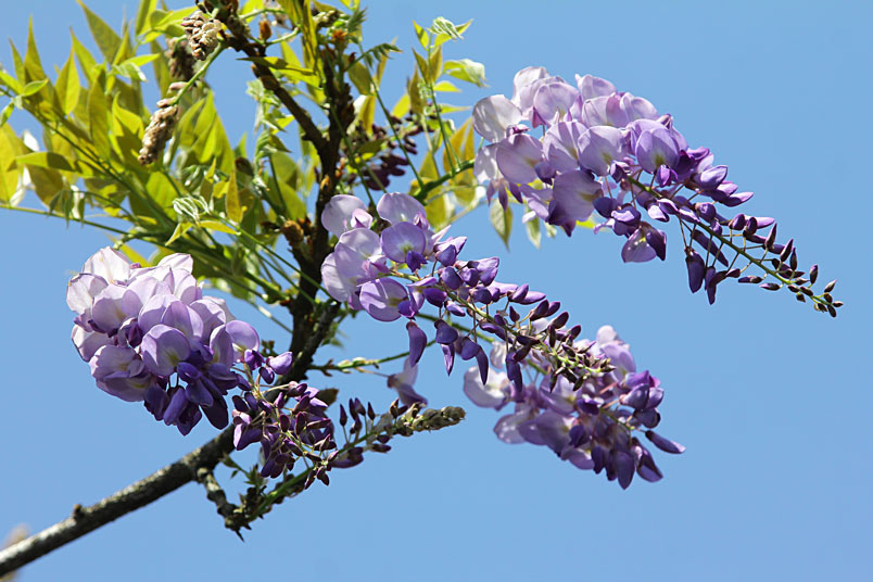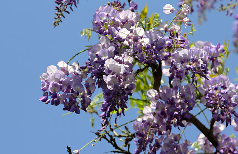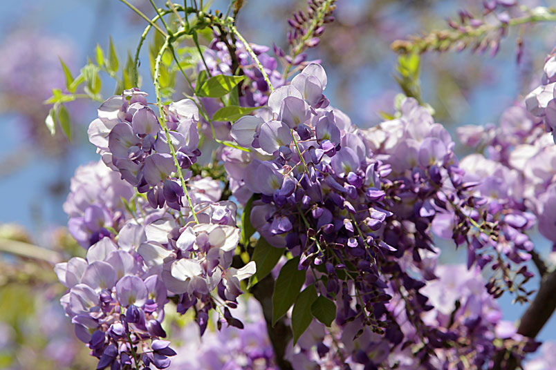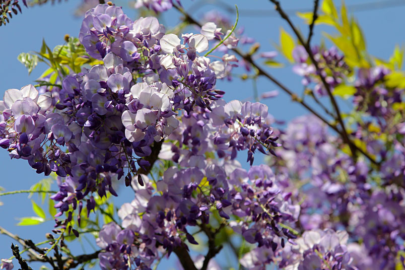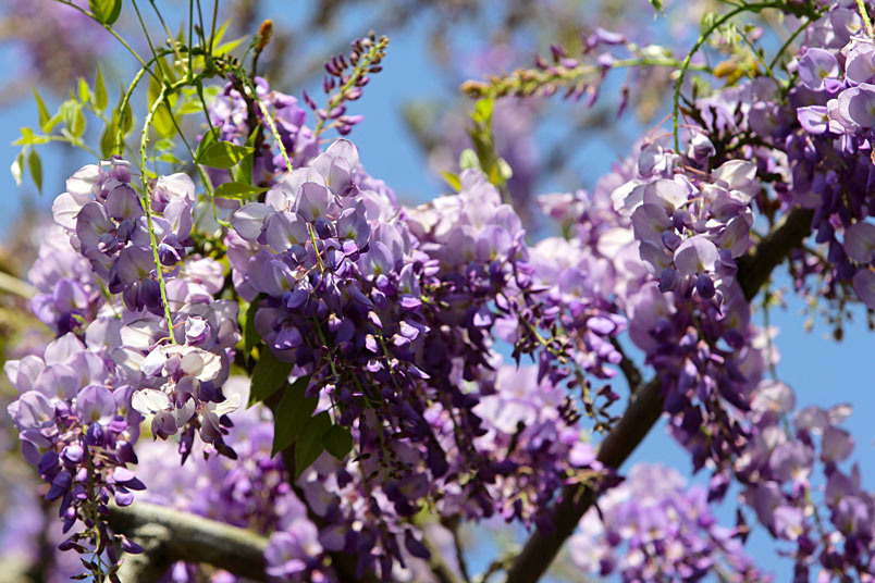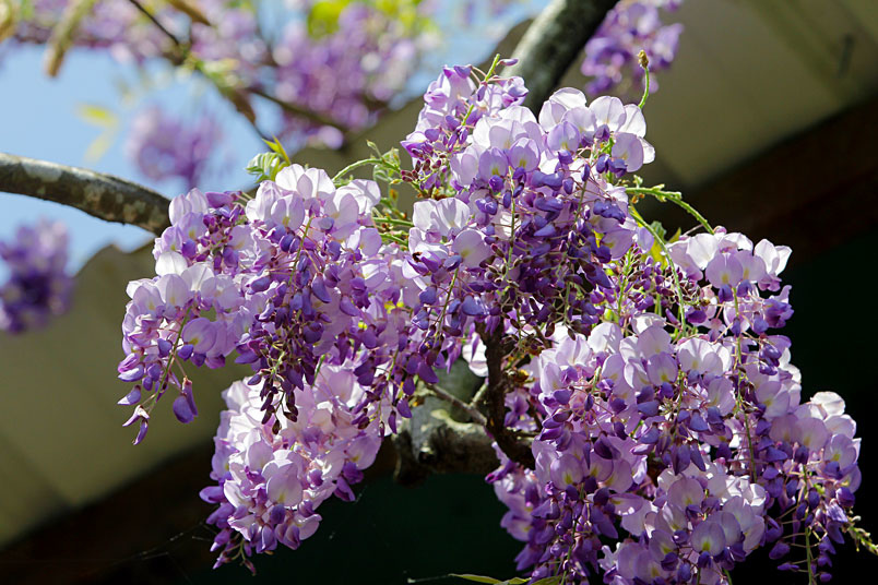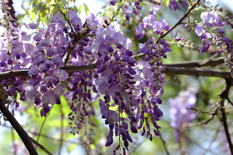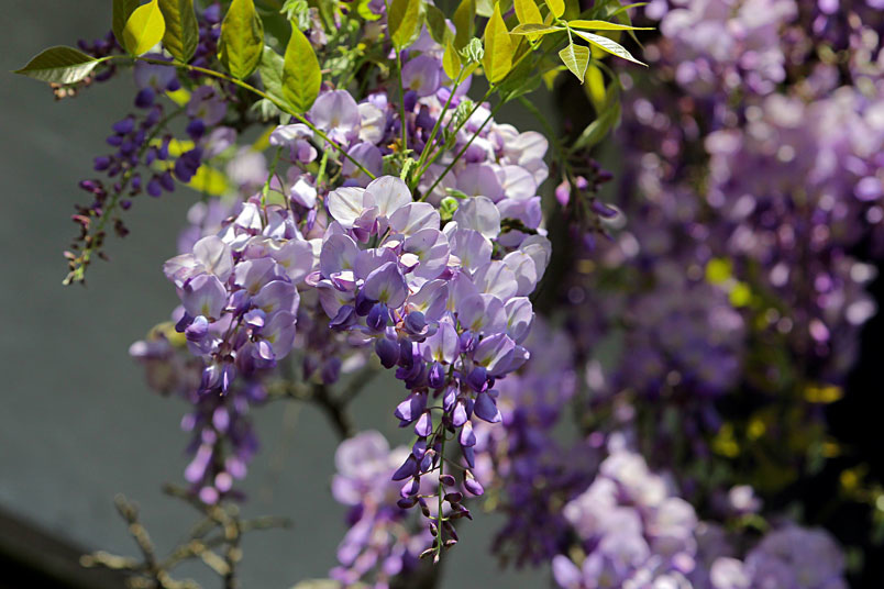 紫藤花,一串串彷彿紫色風鈴般垂吊下來,畫面相當唯美。
