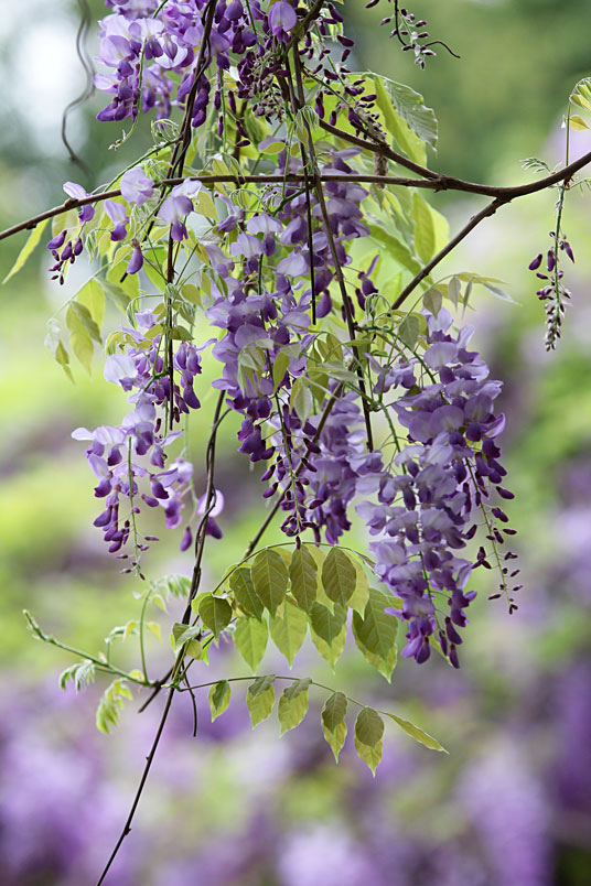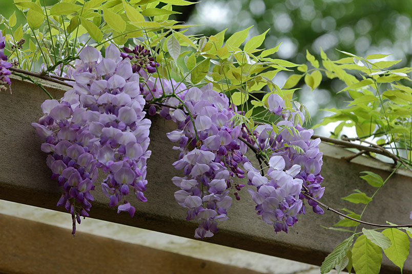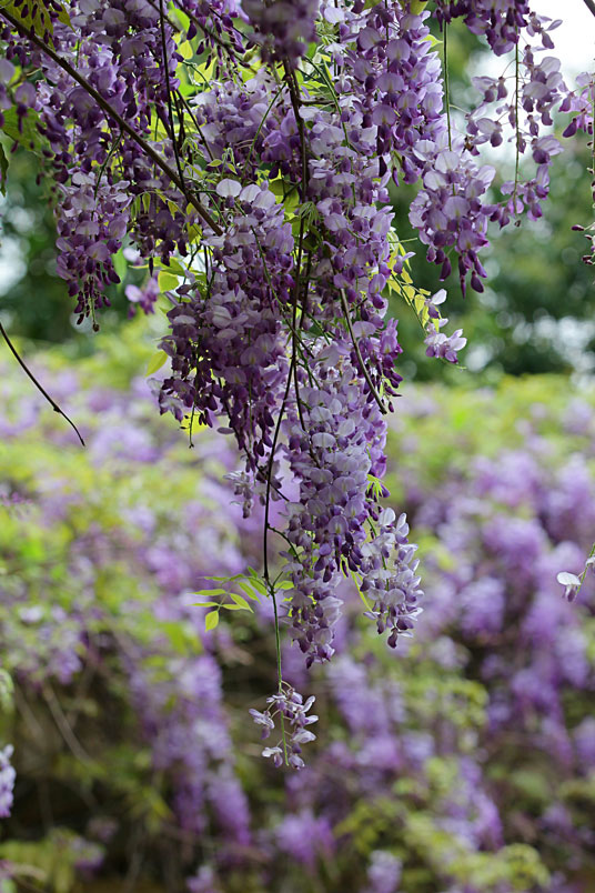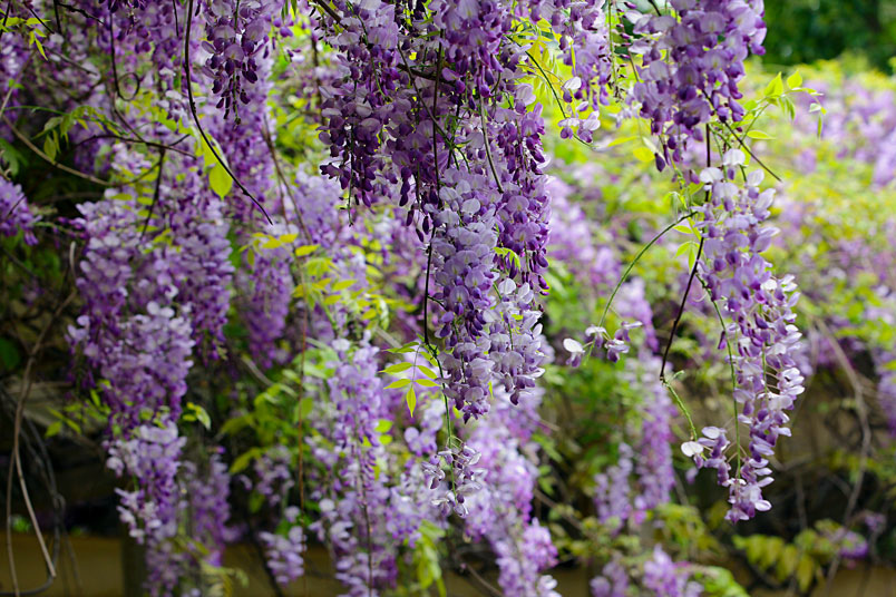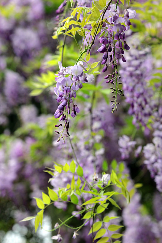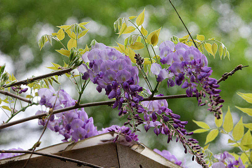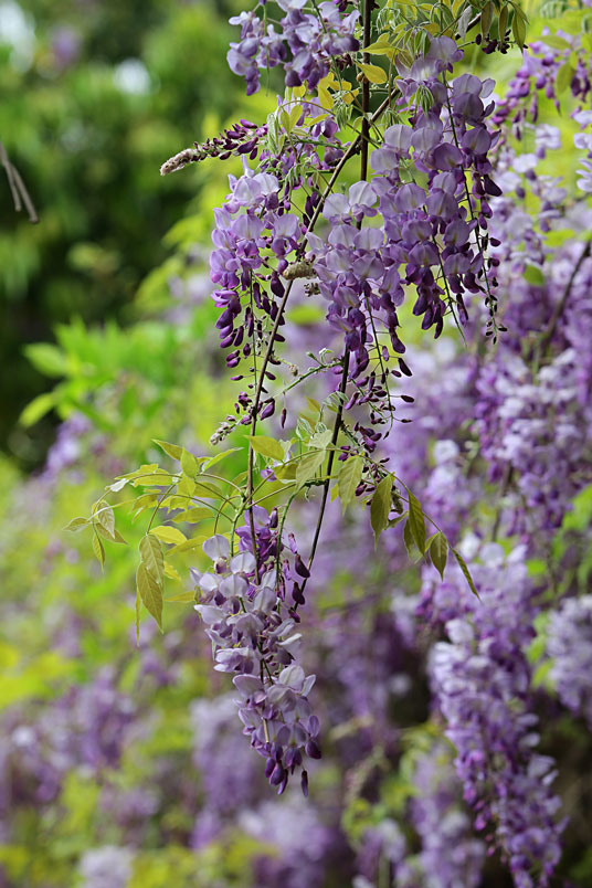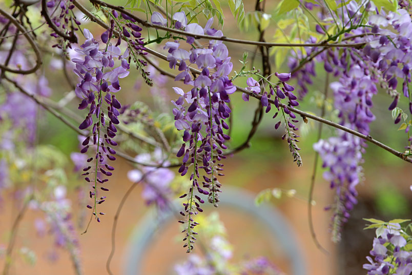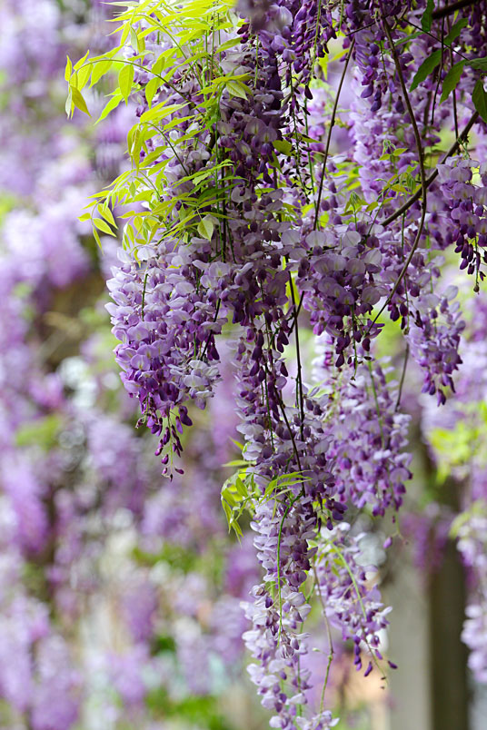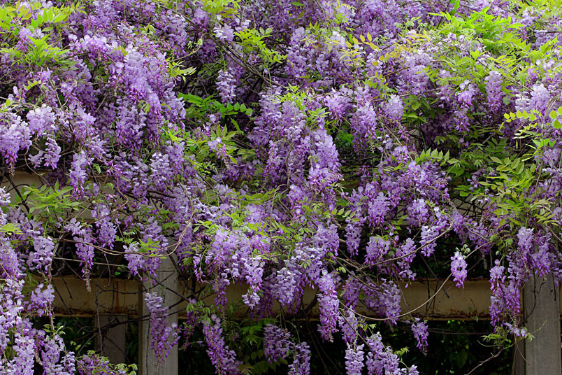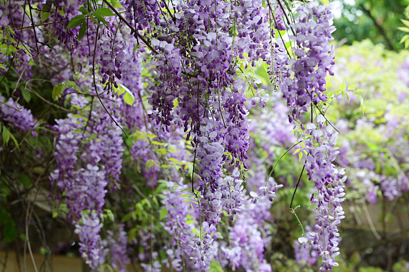 園裡的弧形棚架上,彷彿掛滿一串串紫色風鈴,浪漫的紫色花瀑,