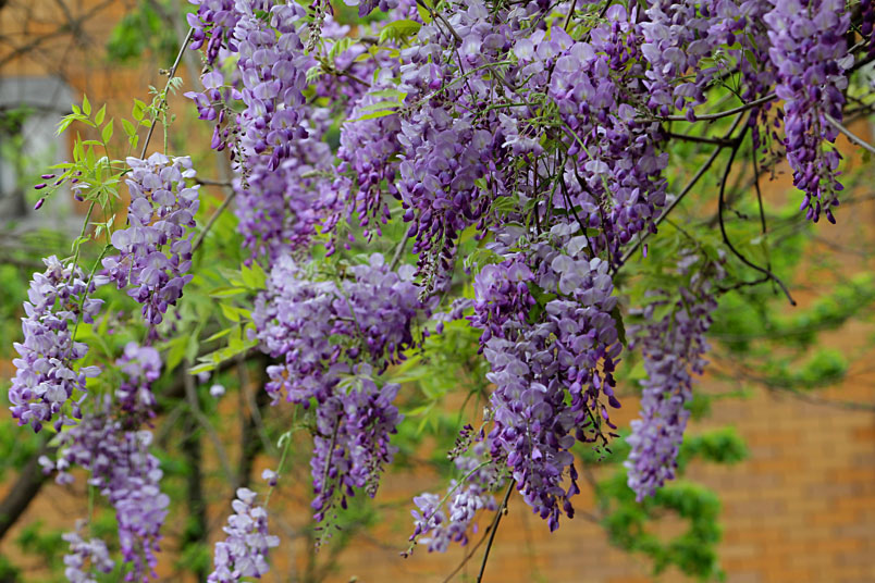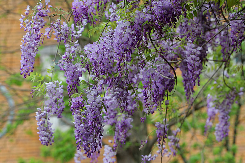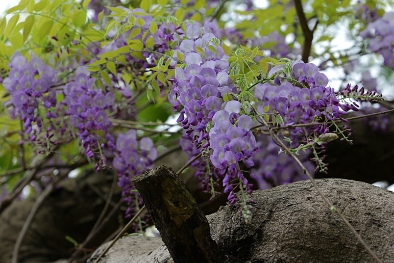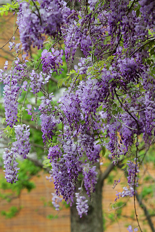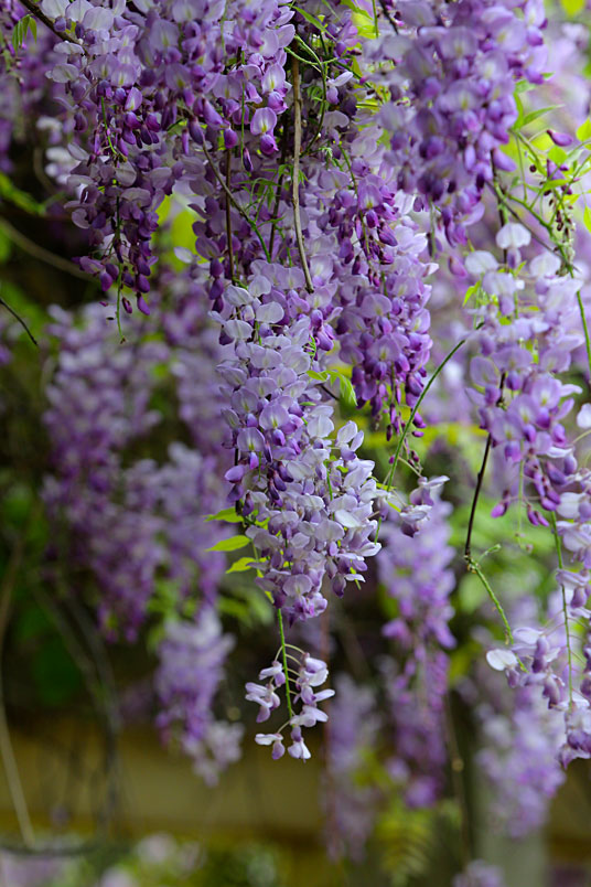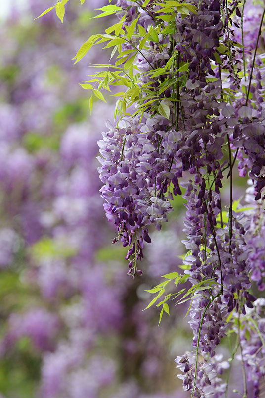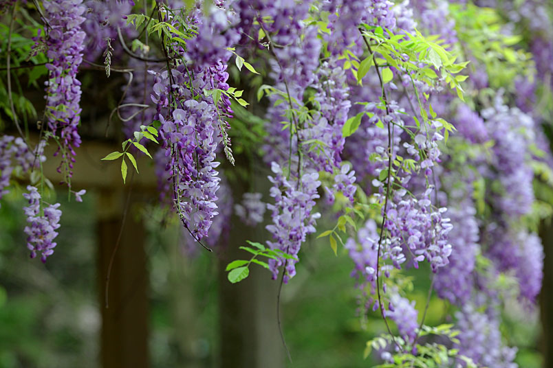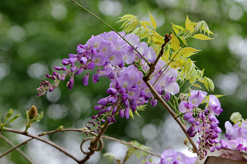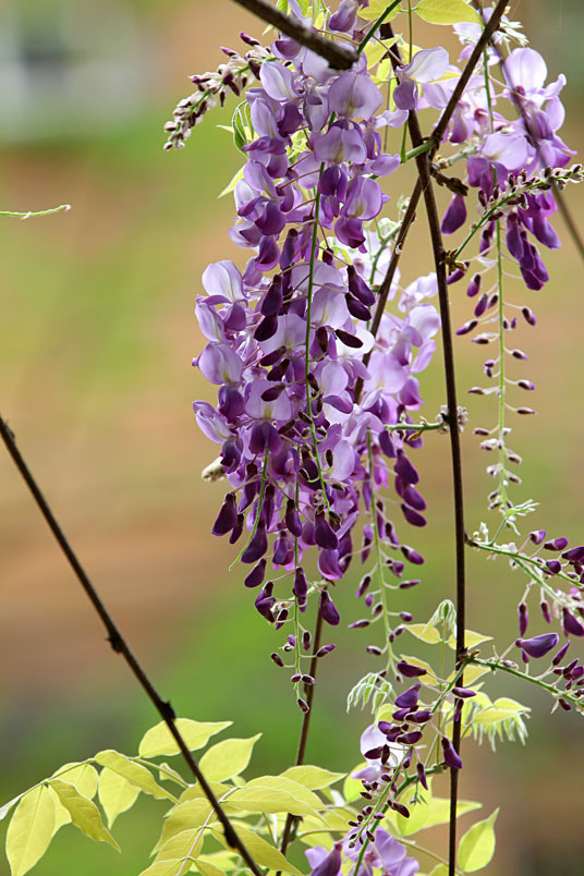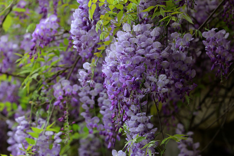 園裡的弧形棚架上,彷彿掛滿一串串紫色風鈴,浪漫的紫色花瀑,