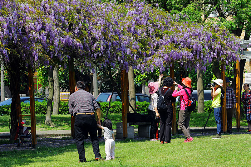 福不需遠行,臨近的小公園裡,即可見到盛開的紫藤之美,沉醉