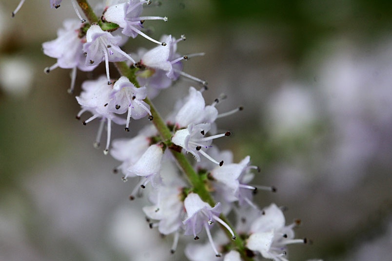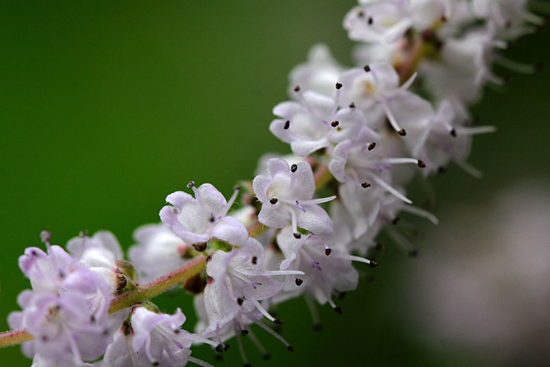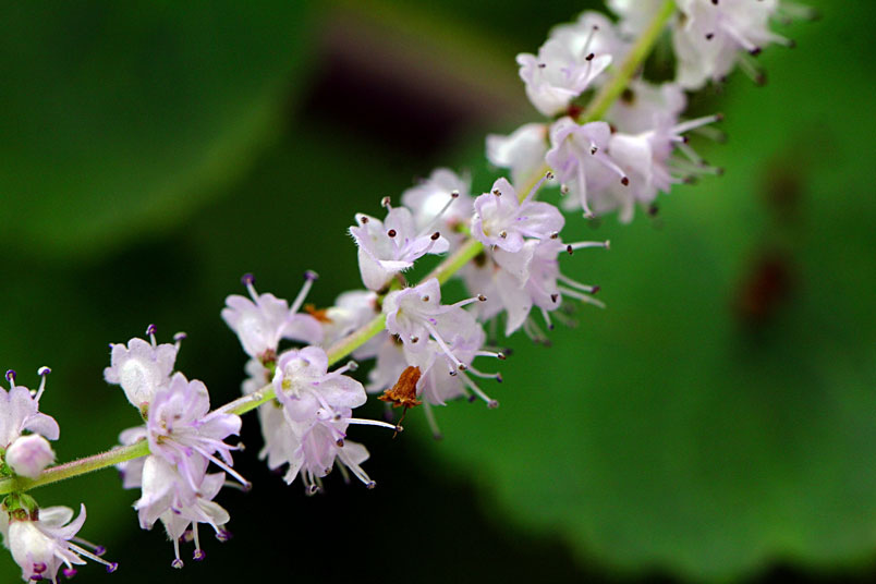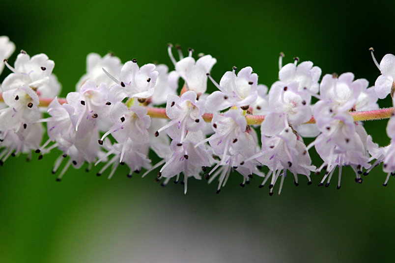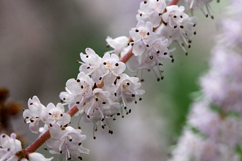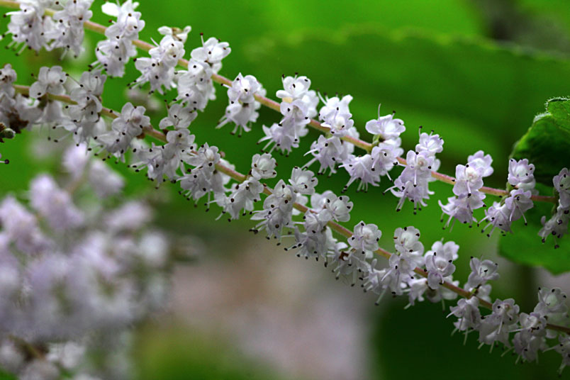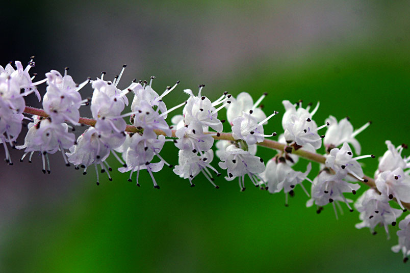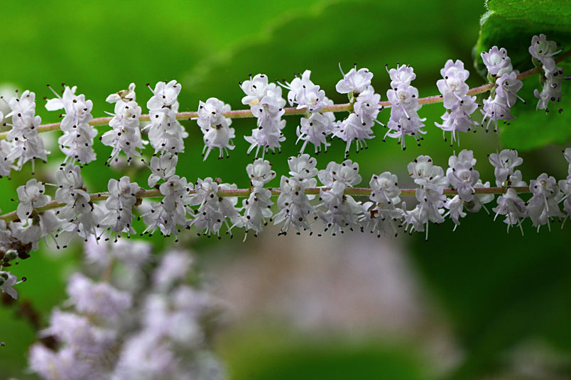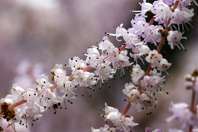 圓錐花序、頂生,花兩性;花梗長約30~100公分,紫紅色,疏生