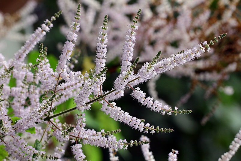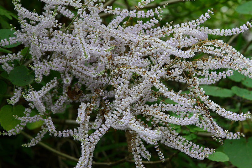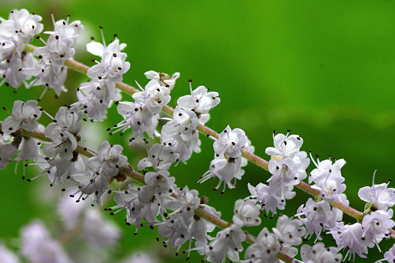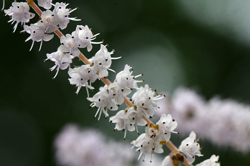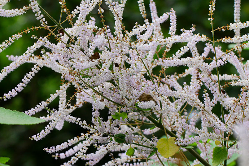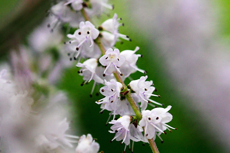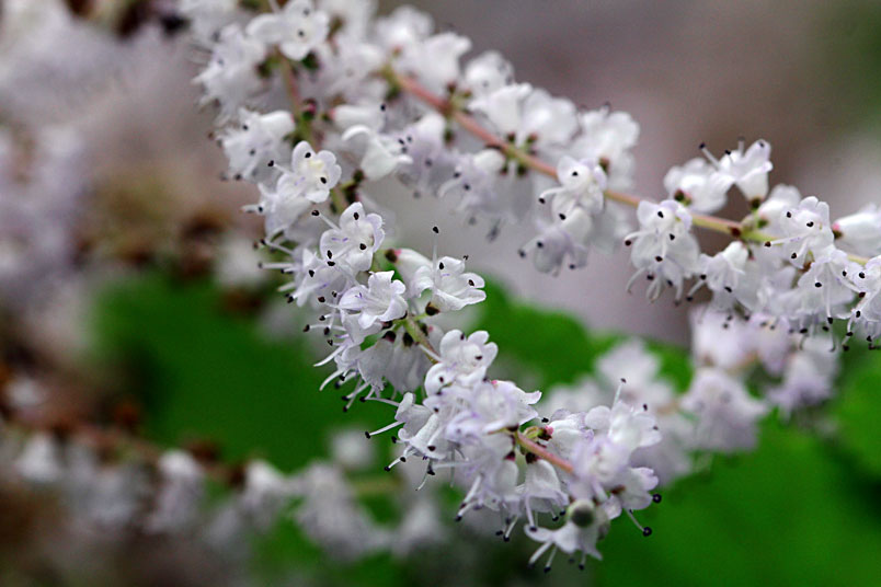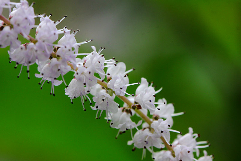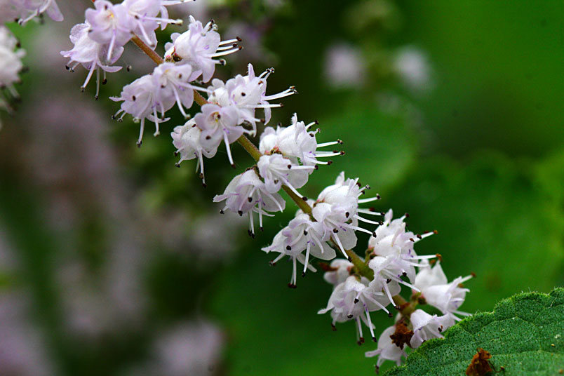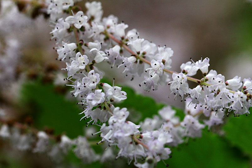 圓錐花序、頂生,花兩性;花梗長約30~100公分,紫紅色,疏生