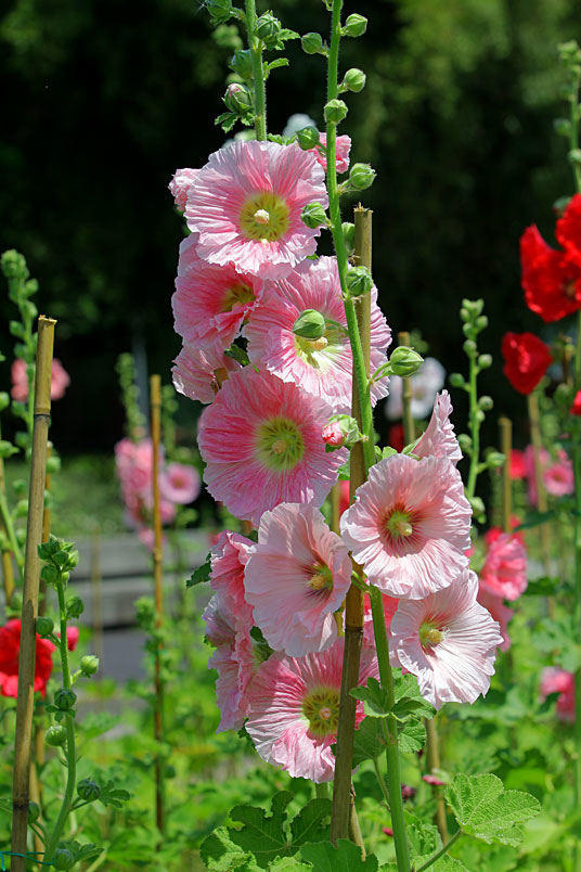 蜀葵經常是各種顏色,混合群植一處,以造成繁花似錦的效果。古