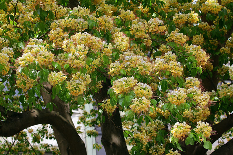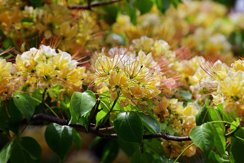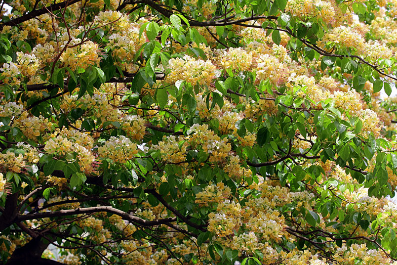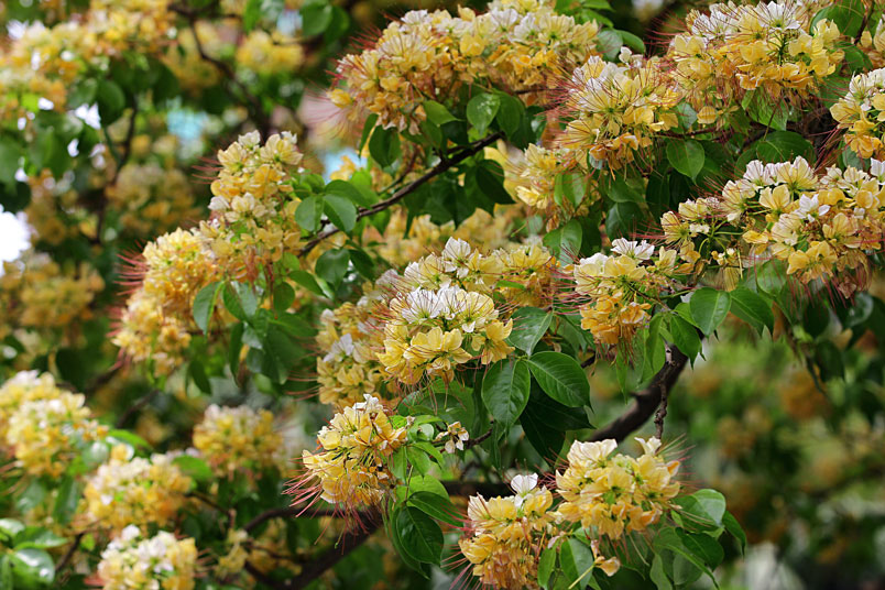 季來臨,樹上成千上萬黃白交錯如蝴蝶般絢麗的花朵,形成澎湃壯