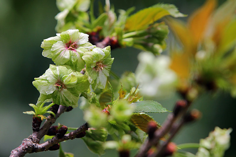 黃綠色系的櫻花是極少數的,這種黃綠色櫻花的顏色在日本被稱為