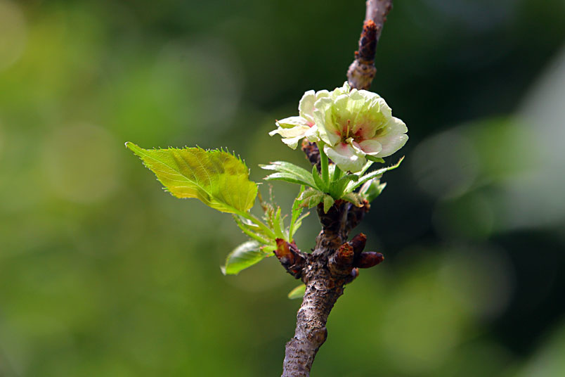 難得一見的綠色櫻花~御衣黃,在溫暖的四月天裡綻放了。