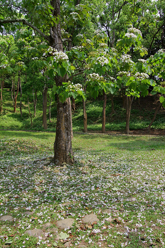 :千年桐,(花期在每年的三到五月)及三年桐(花期為每年的四到七