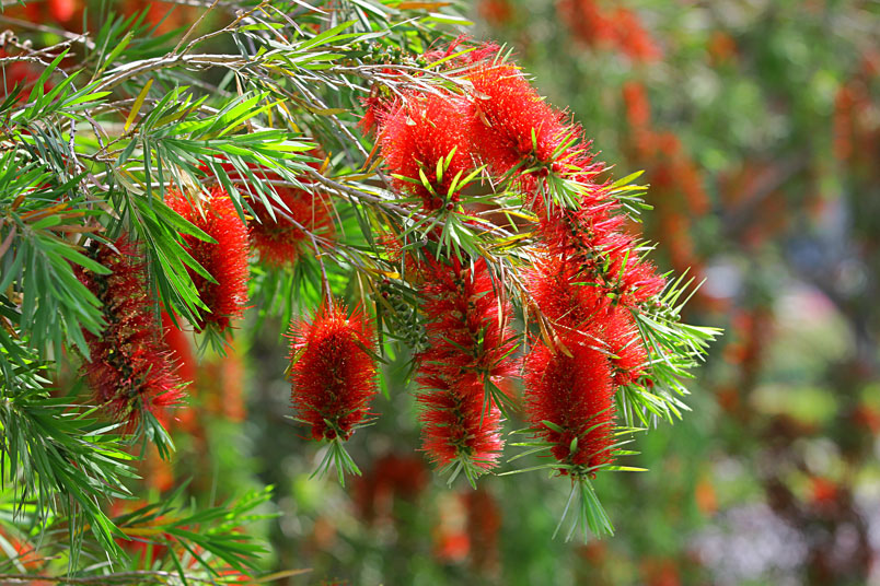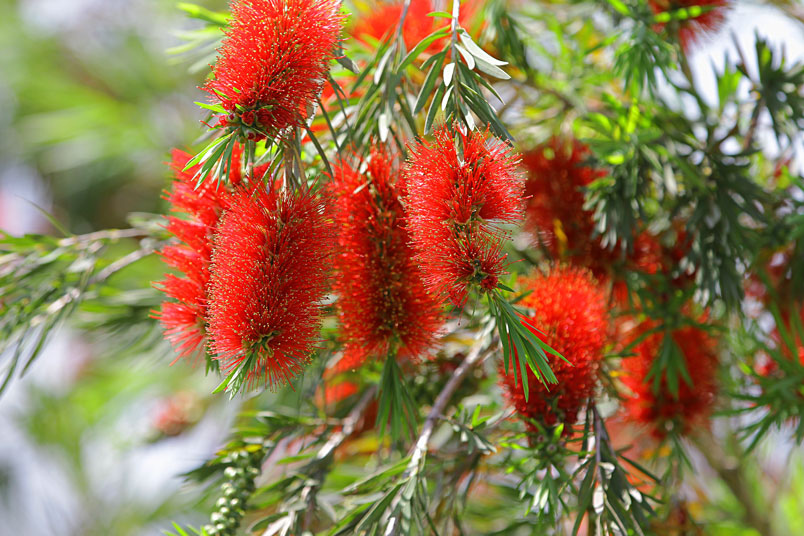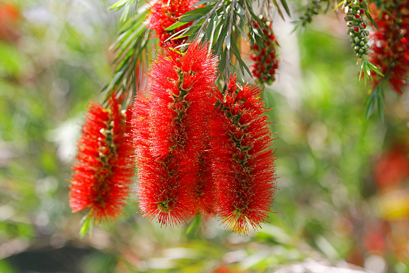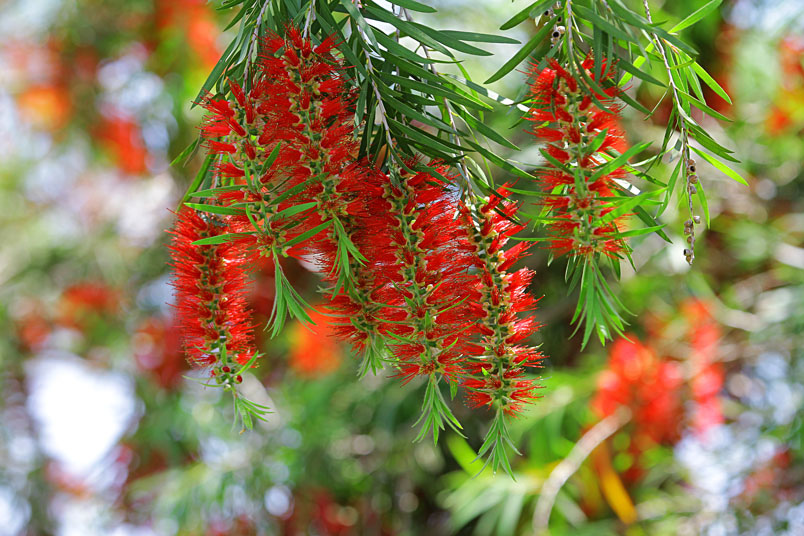 似紅色的奶瓶刷,盛開時懸垂滿樹,美艷醒目。