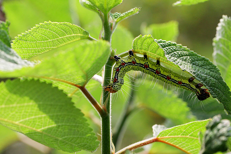 ,端部有一枚小斑點,腹緣外露綠色,各腳綠色細長。