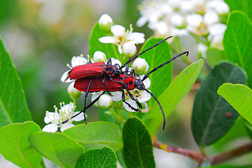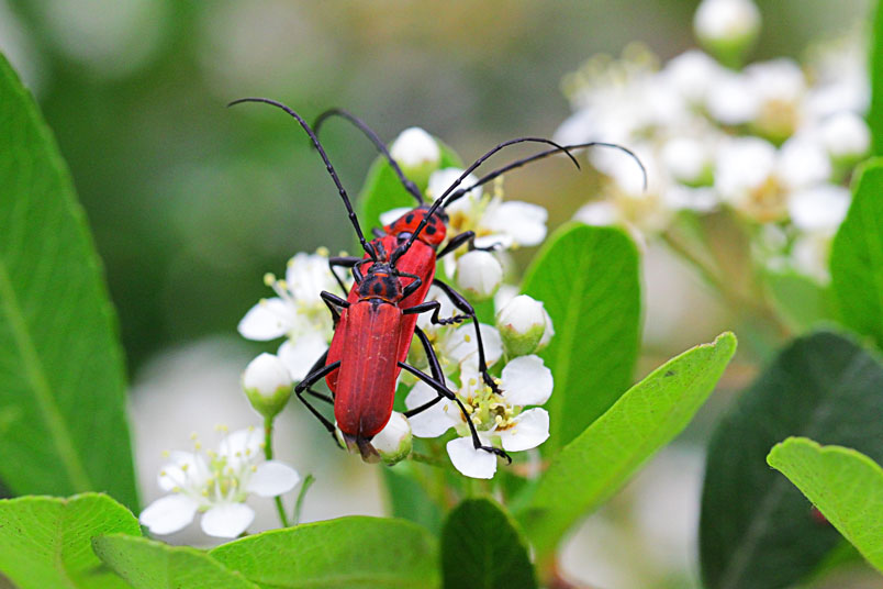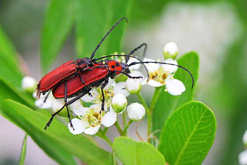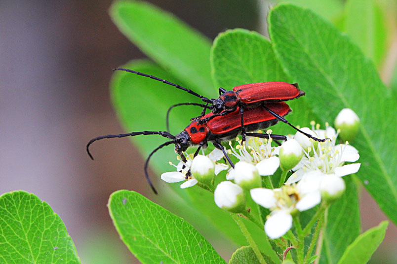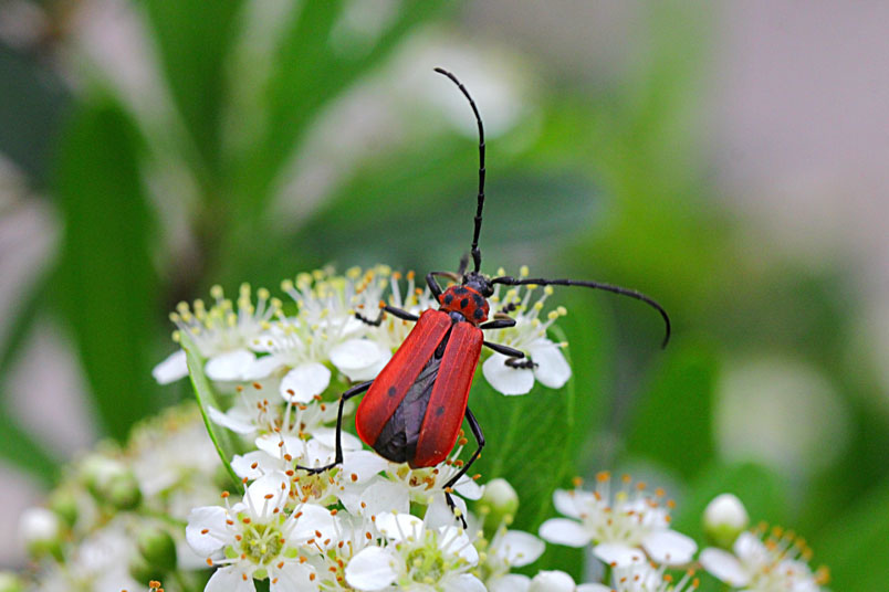 丁美氏紅天牛,(天牛科 / 天牛亞科) 體長12~17mm,頭部黑色,